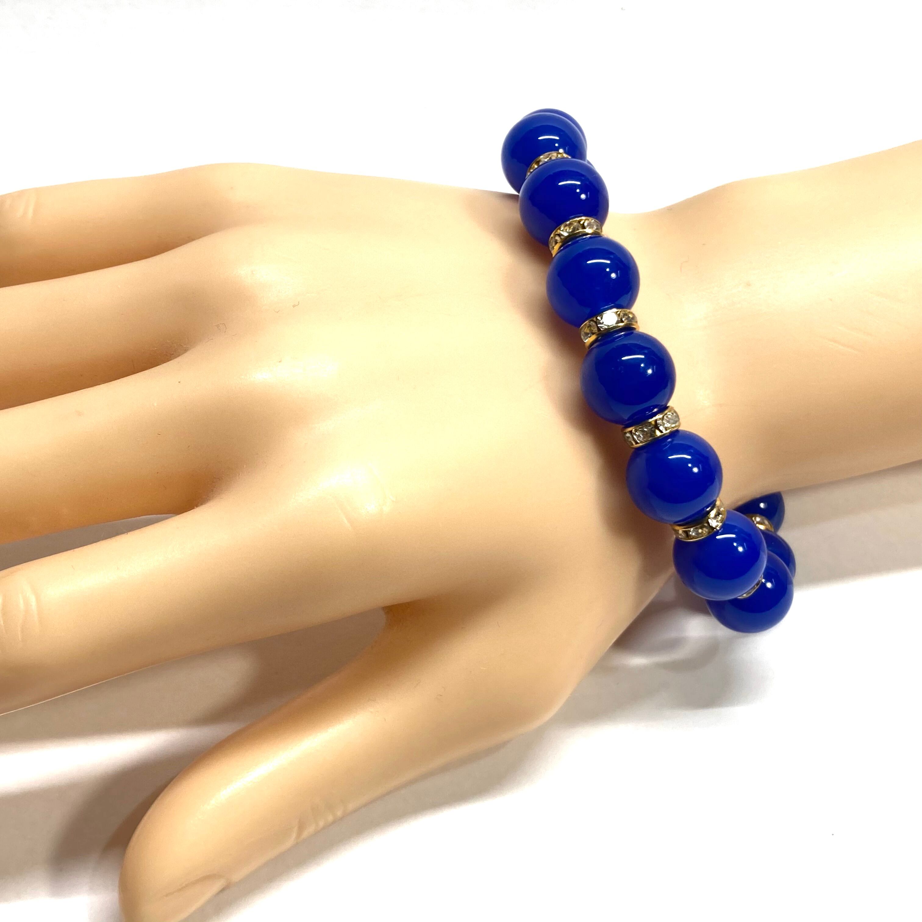 こちらは、12mm玉の青瑪瑙を使用したパワーストーンブレスレットです。間にはロンデルを挟み高級感を演出しております。男女問わずどんなコーディネートとも合わせ易いブレスレットです。サイズは内周約18cmです。数に限りがございますので気になる方はお早めにどうぞ。