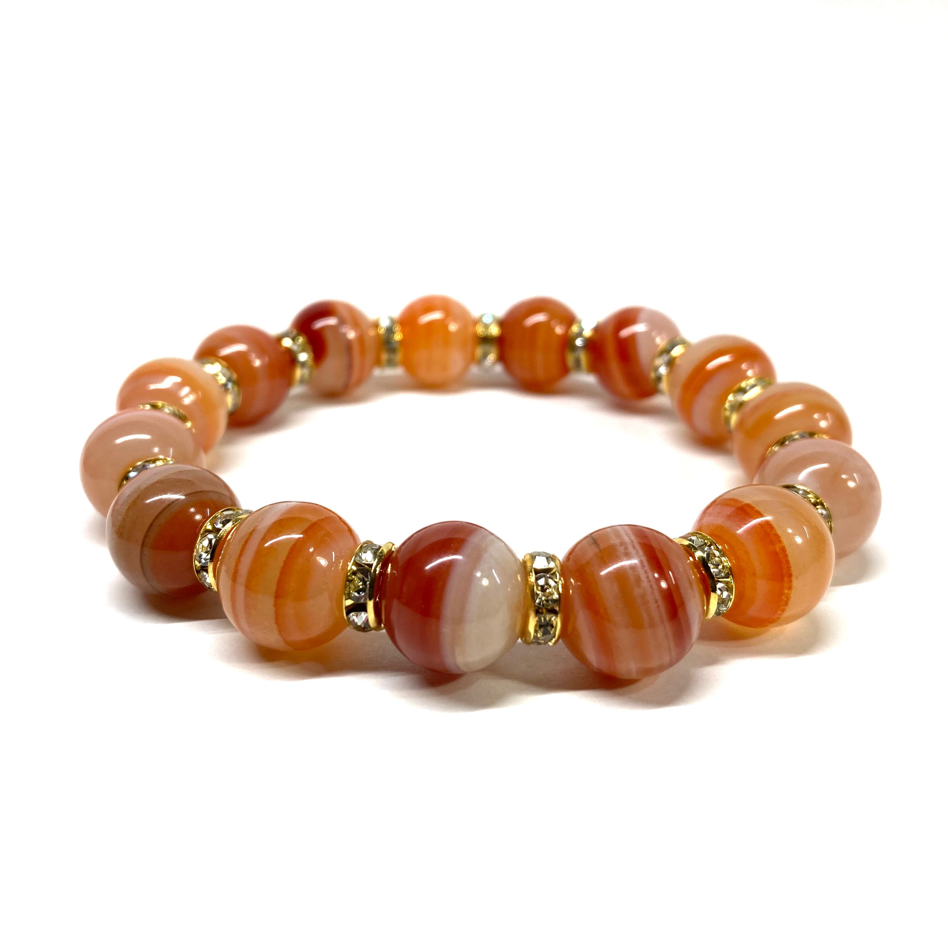 カーネリアン・サードニクス パワーストーン ブレスレット 12mm (ゴールド)メンズ・レディース 男性・女性 数珠ブレス 開運 ☆