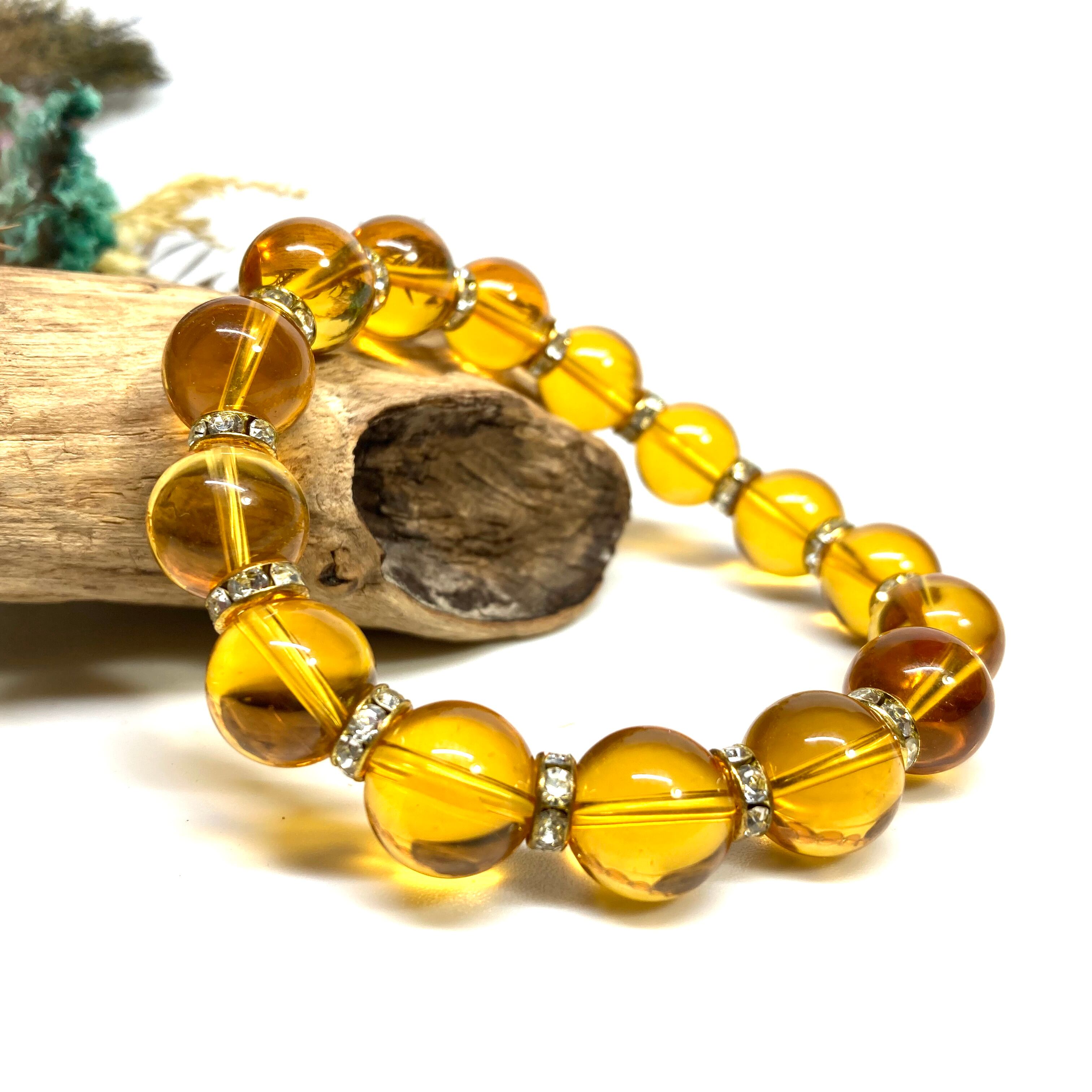 シトリン パワーストーン ブレスレット 12mm (ゴールド) 数珠ブレス メンズ・レディース 男性 女性 幸運 開運 浄化 金運 ☆