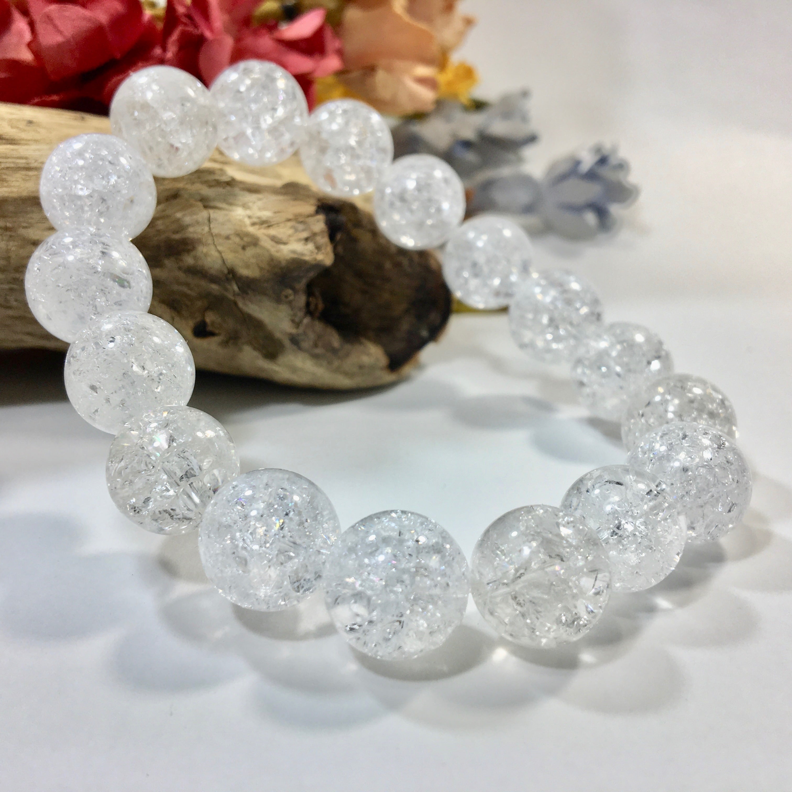 クラック水晶 パワーストーン ブレスレット 12mm 天然石ブレス (シンプル) 天然石ブレス 数珠ブレス メンズ・レディース 男性 女性 幸運 開運 浄化 ☆