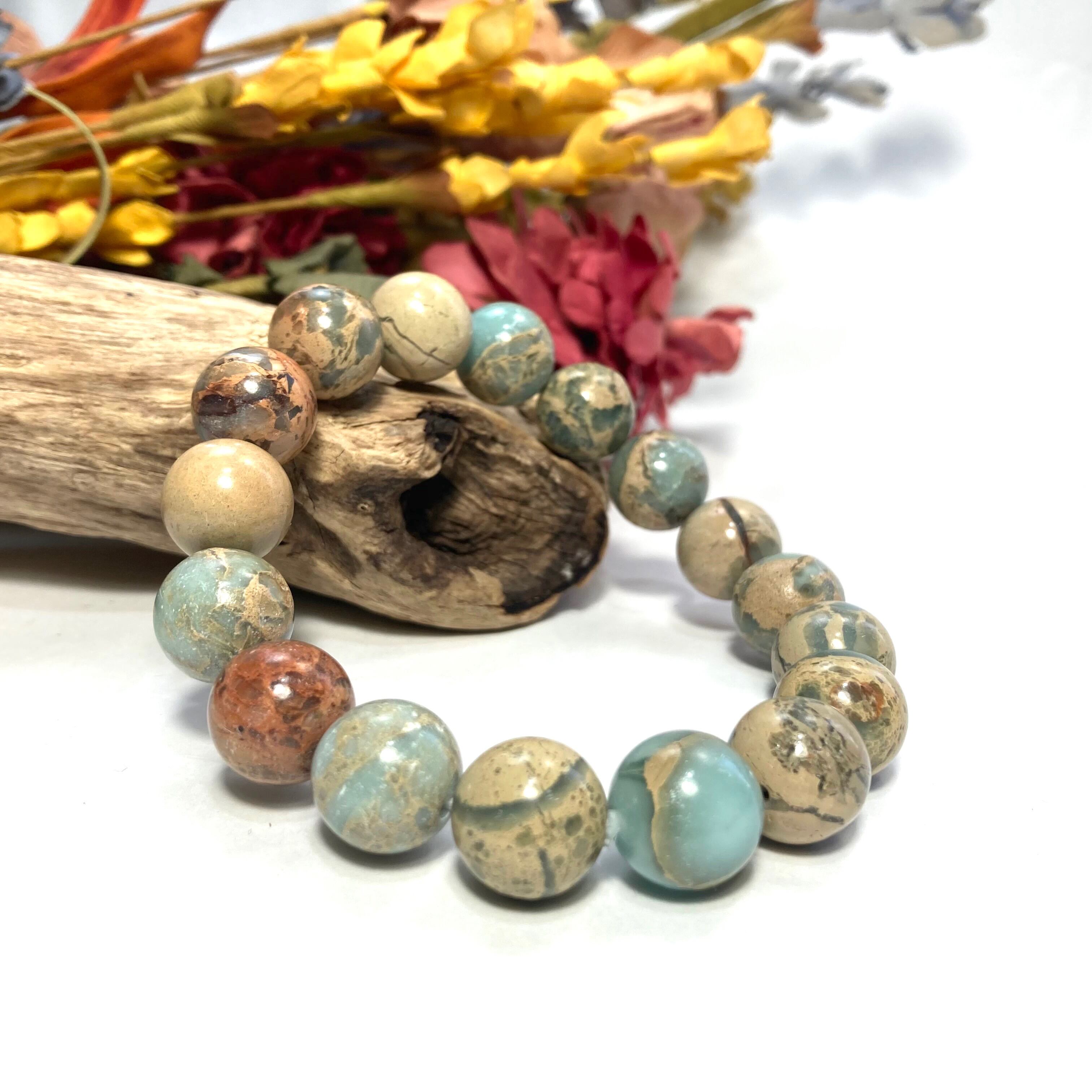 インプレッションストーン パワーストーン ブレスレット 12mm (シンプル) 天然石ブレス 数珠ブレス メンズ・レディース 男性 女性 幸運 開運 浄化 ☆