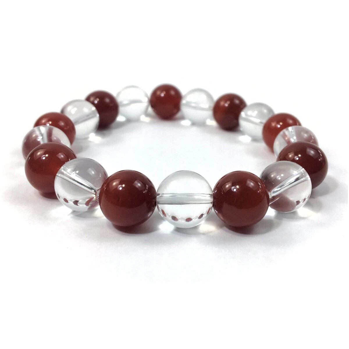 水晶×赤瑪瑙 パワーストーン ブレスレット 12mm 天然石ブレス メンズ・レディース 男性・女性 数珠ブレス 開運 ☆