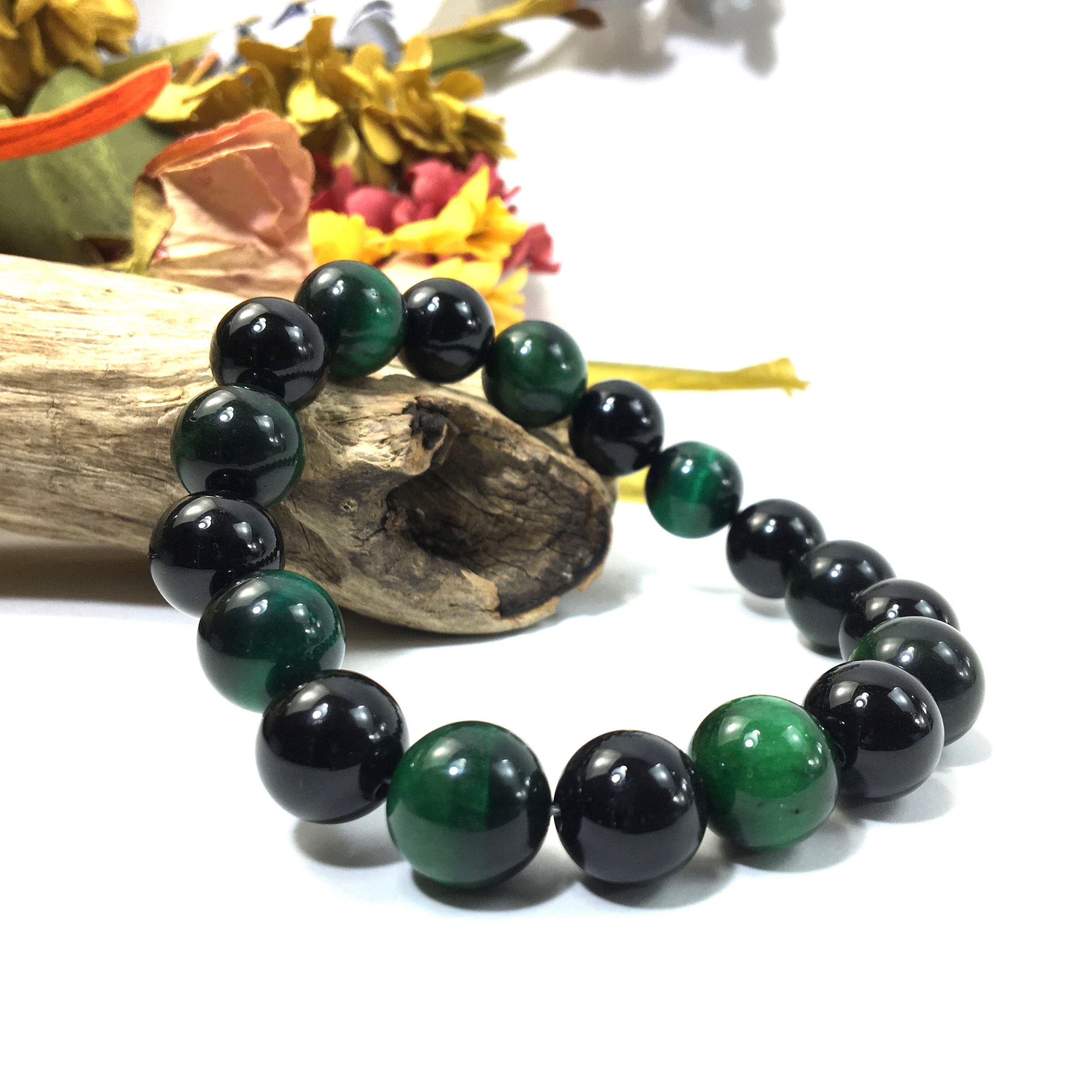 オニキス×グリーンタイガーアイ パワーストーン ブレスレット 12mm 天然石 メンズ・レディース 男性・女性 数珠ブレス 開運 ☆