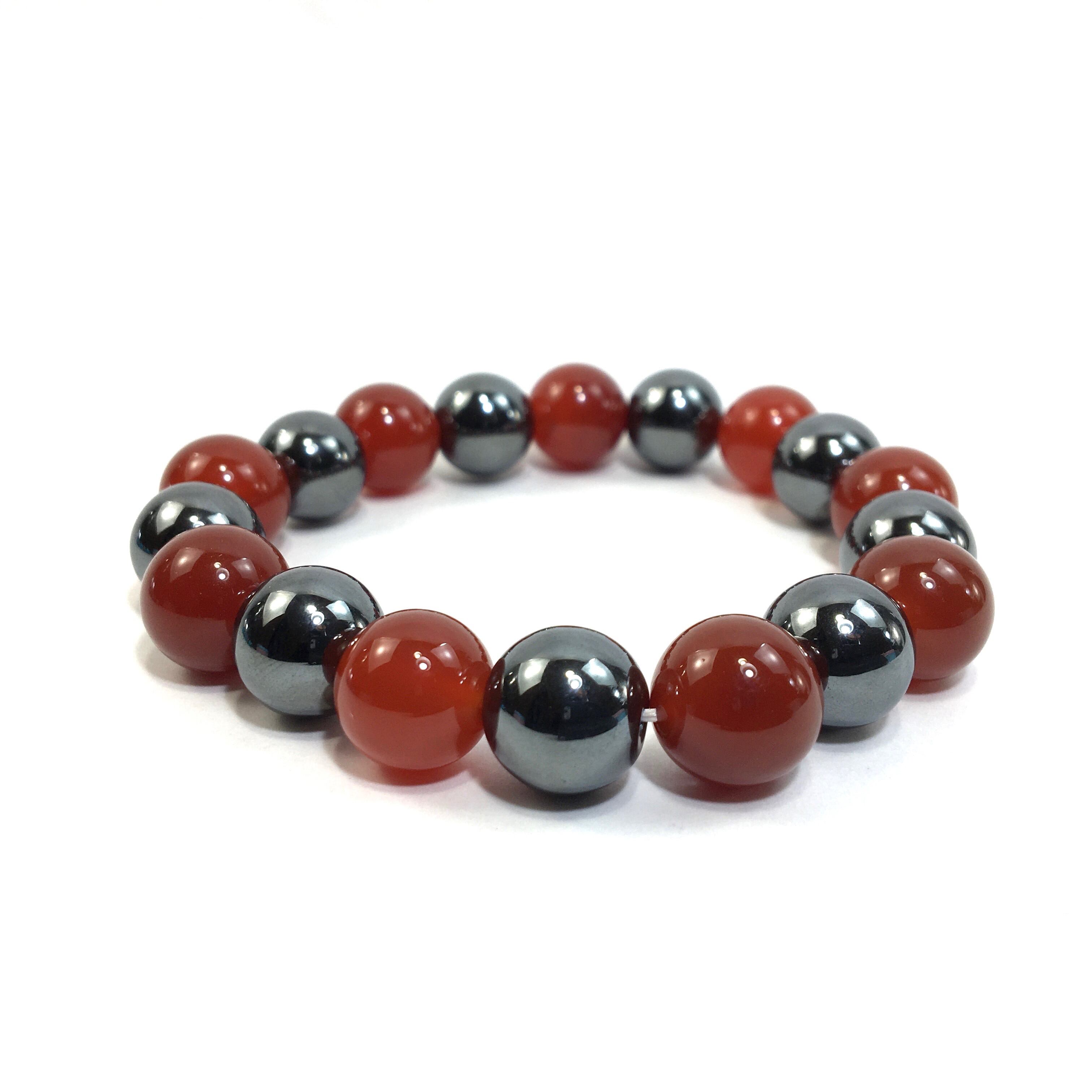 ヘマタイト×赤瑪瑙 パワーストーン ブレスレット 12mm 天然石ブレス メンズ・レディース 男性・女性 数珠ブレス 開運 ☆