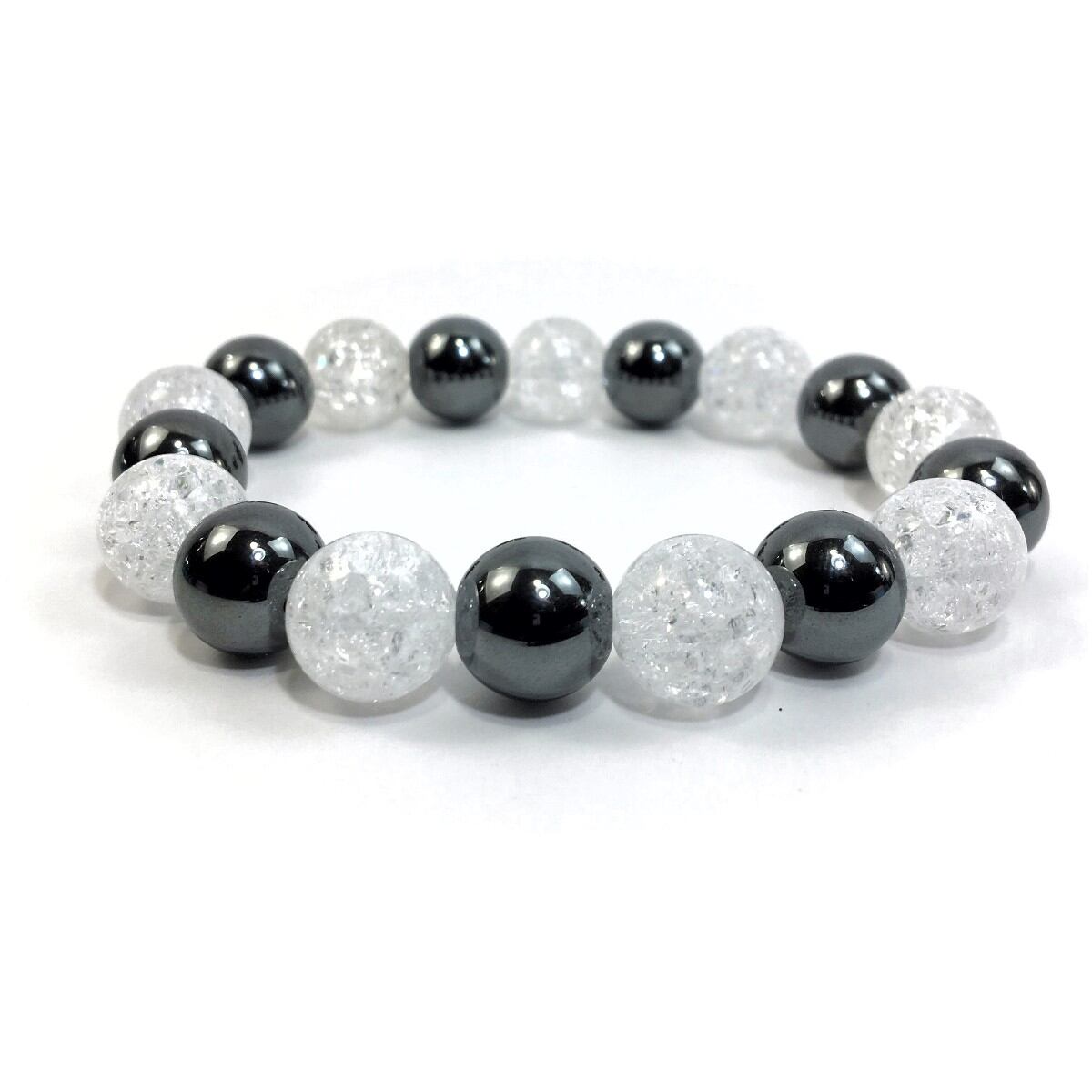 ヘマタイト×クラック水晶 パワーストーン ブレスレット 12mm 天然石 メンズ・レディース 男性・女性 数珠ブレス 開運 ☆