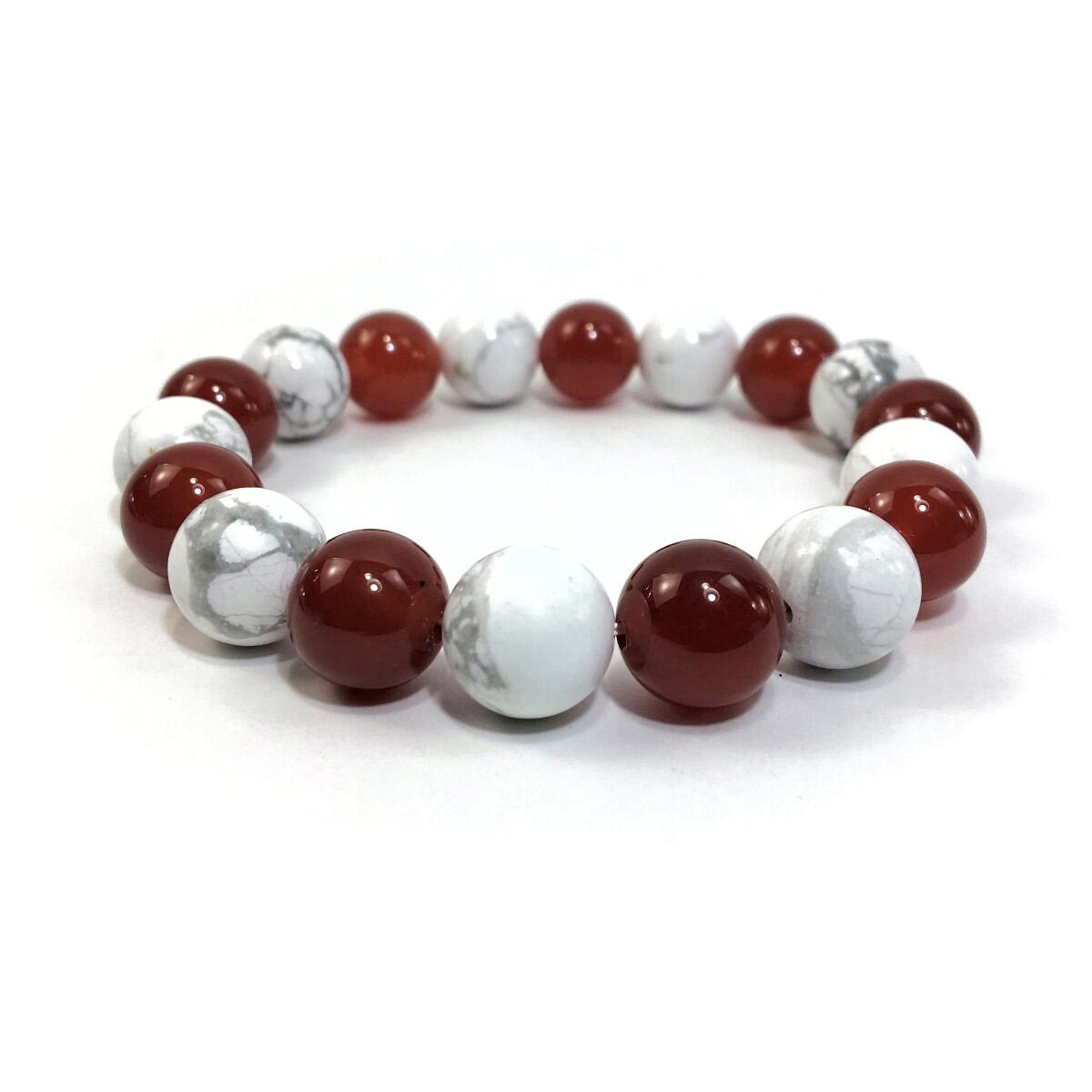 ハウライト×赤瑪瑙 パワーストーン ブレスレット 12mm 天然石ブレス メンズ・レディース 男性・女性 数珠ブレス 開運 ☆