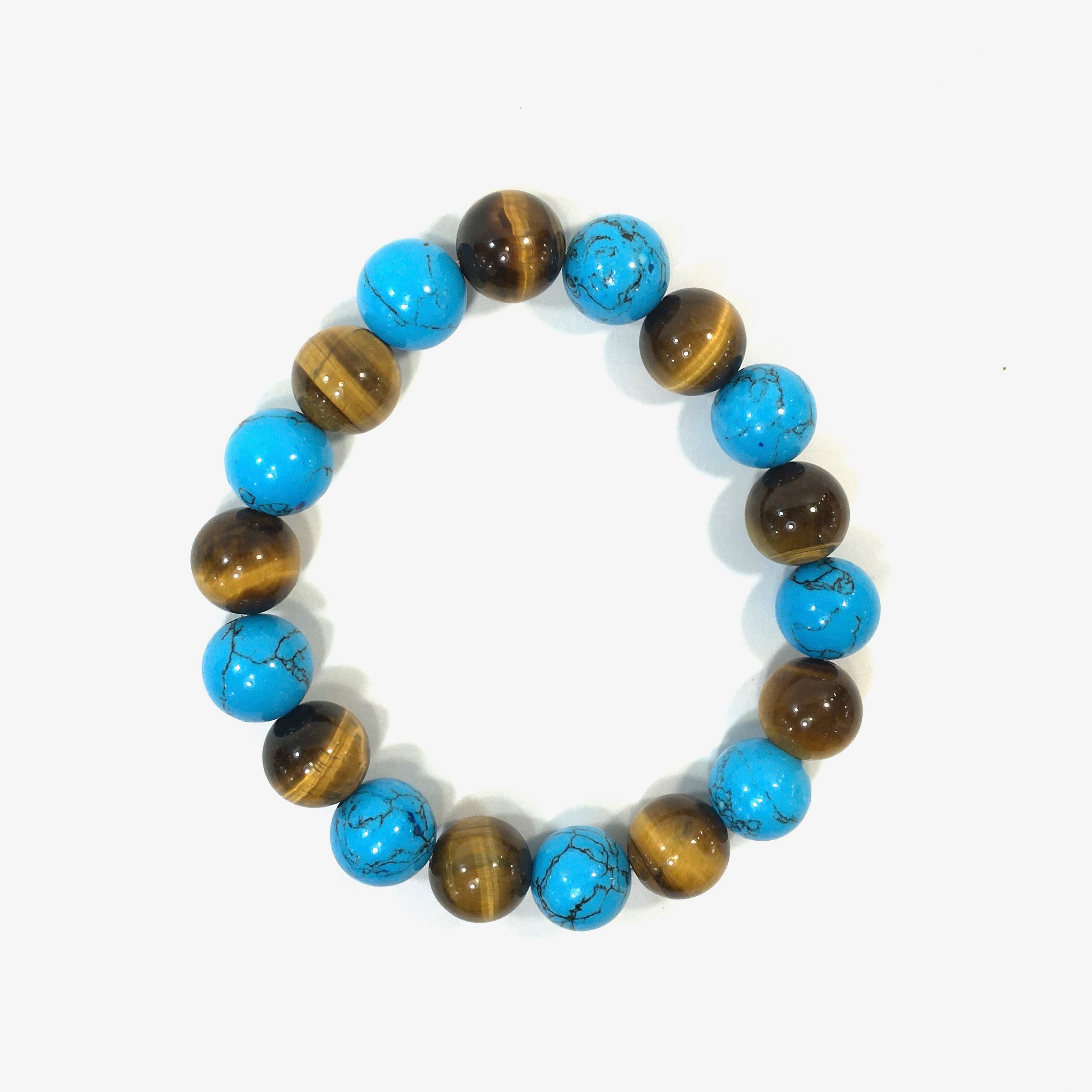 ターコイズ×タイガーアイ パワーストーン ブレスレット 12mm メンズ・レディース 男性・女性 数珠ブレス 開運 ☆