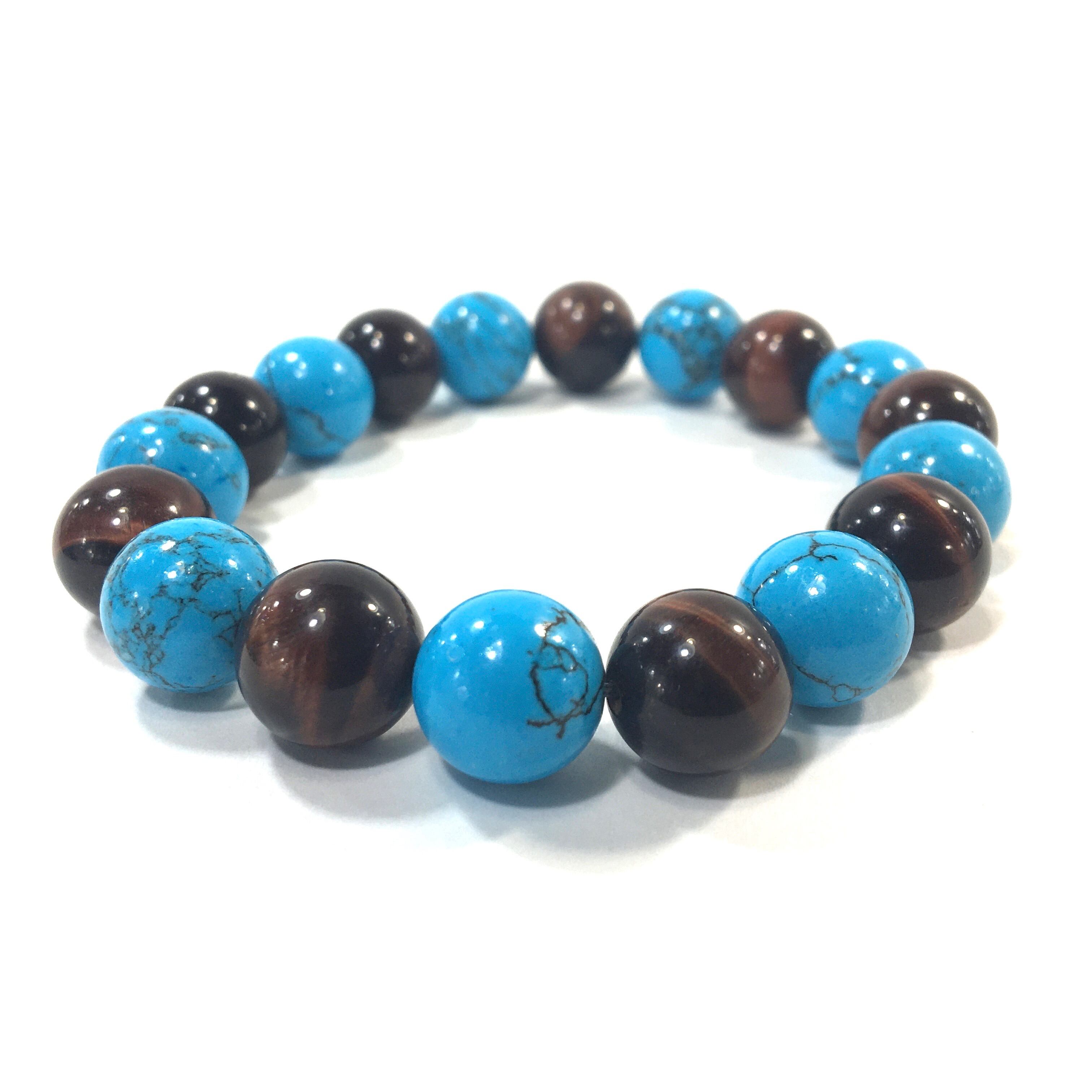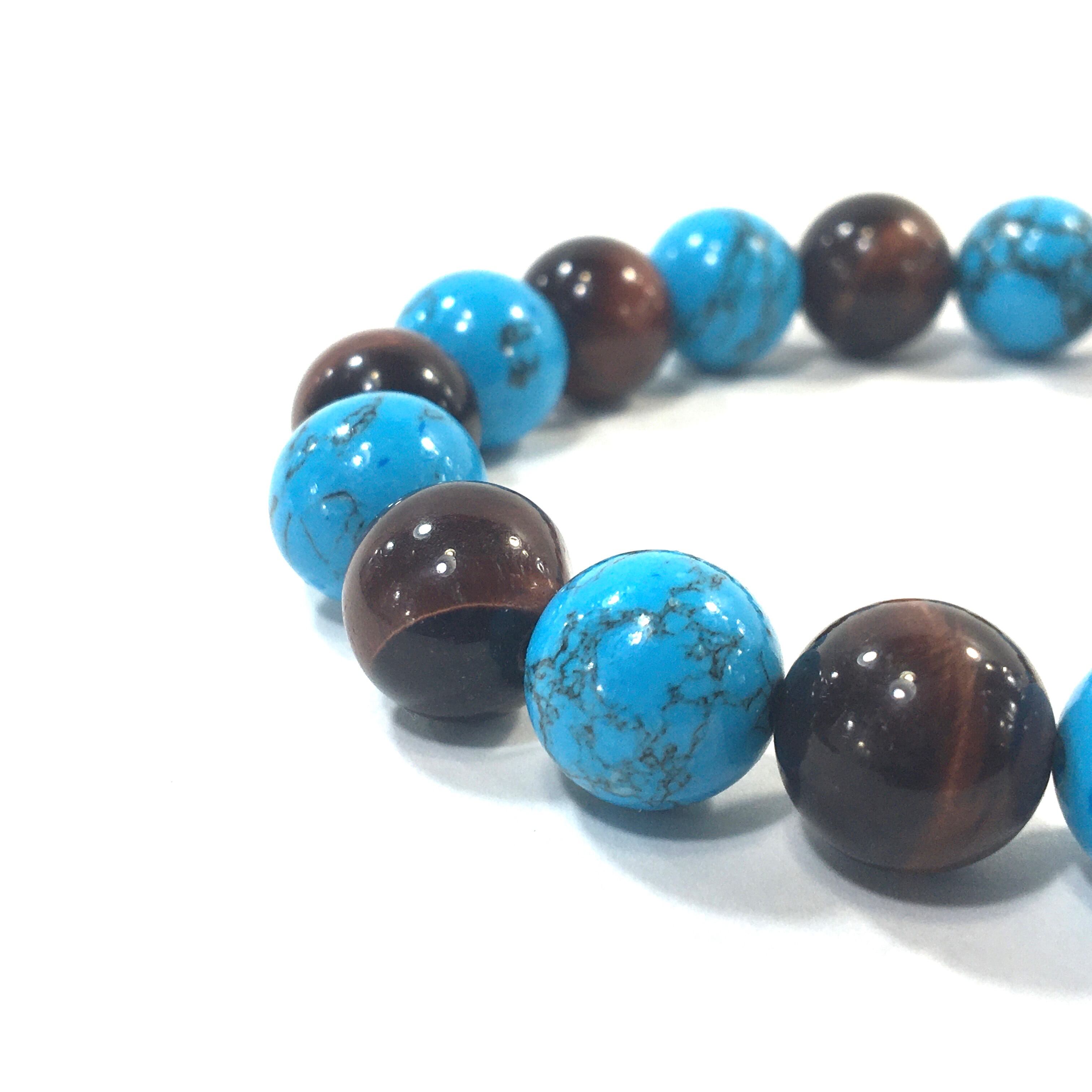 ターコイズ×レッドタイガーアイ パワーストーン ブレスレット 12mm メンズ・レディース 男性・女性 数珠ブレス 開運 ☆