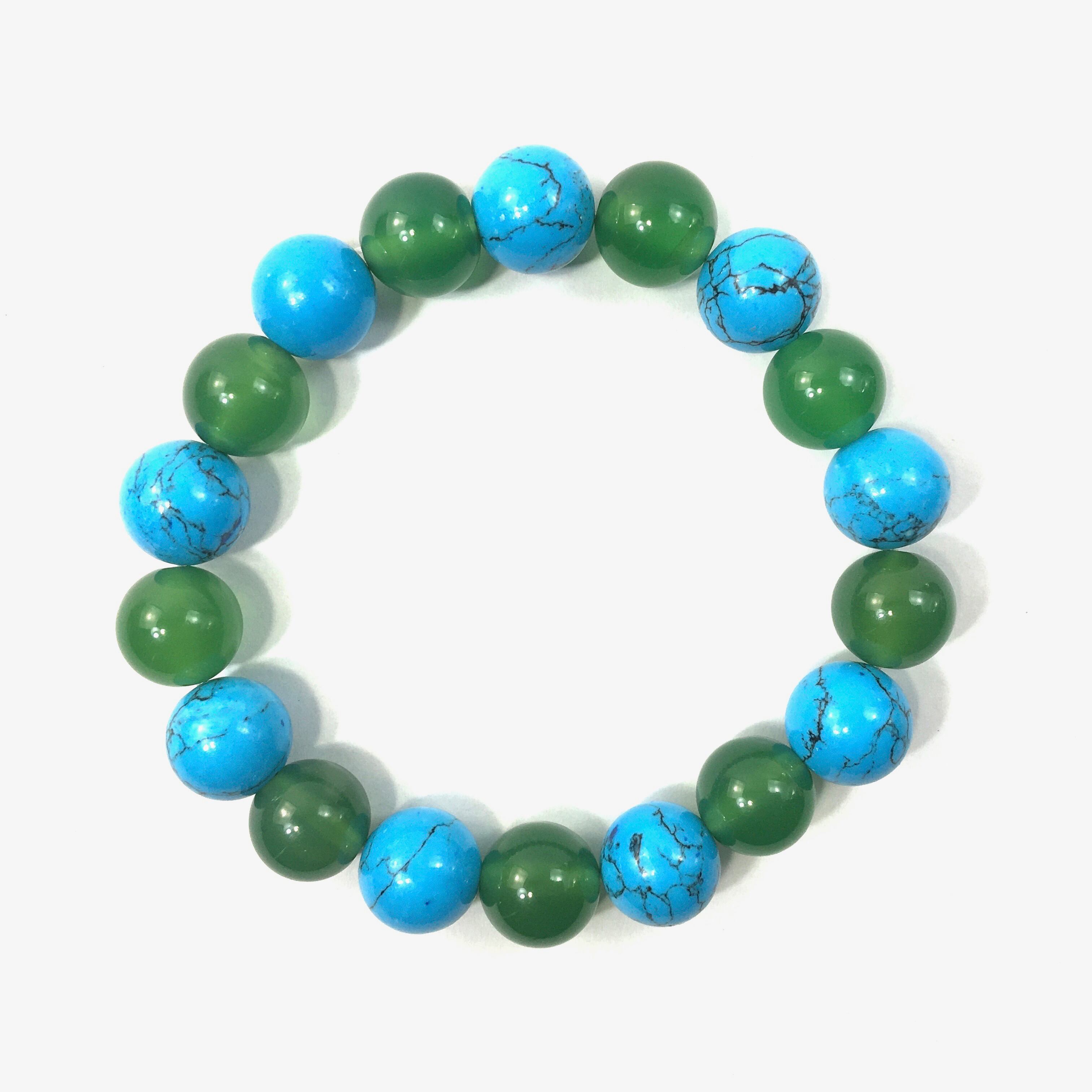 ターコイズ×緑瑪瑙 パワーストーン ブレスレット 12mm メンズ・レディース 男性・女性 数珠ブレス 開運 ☆