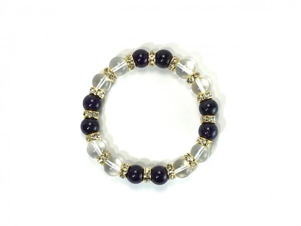 こちらは、アメジストと水晶を組み合わせたブレスレットです。間にはロンデルを挟み高級感あるデザインに仕上がっています。石大きさは腕にも馴染みやすいように10mm玉で内周約16cm(伸可能)です。数に限りがございますので気になる方はお早めにどうぞ。