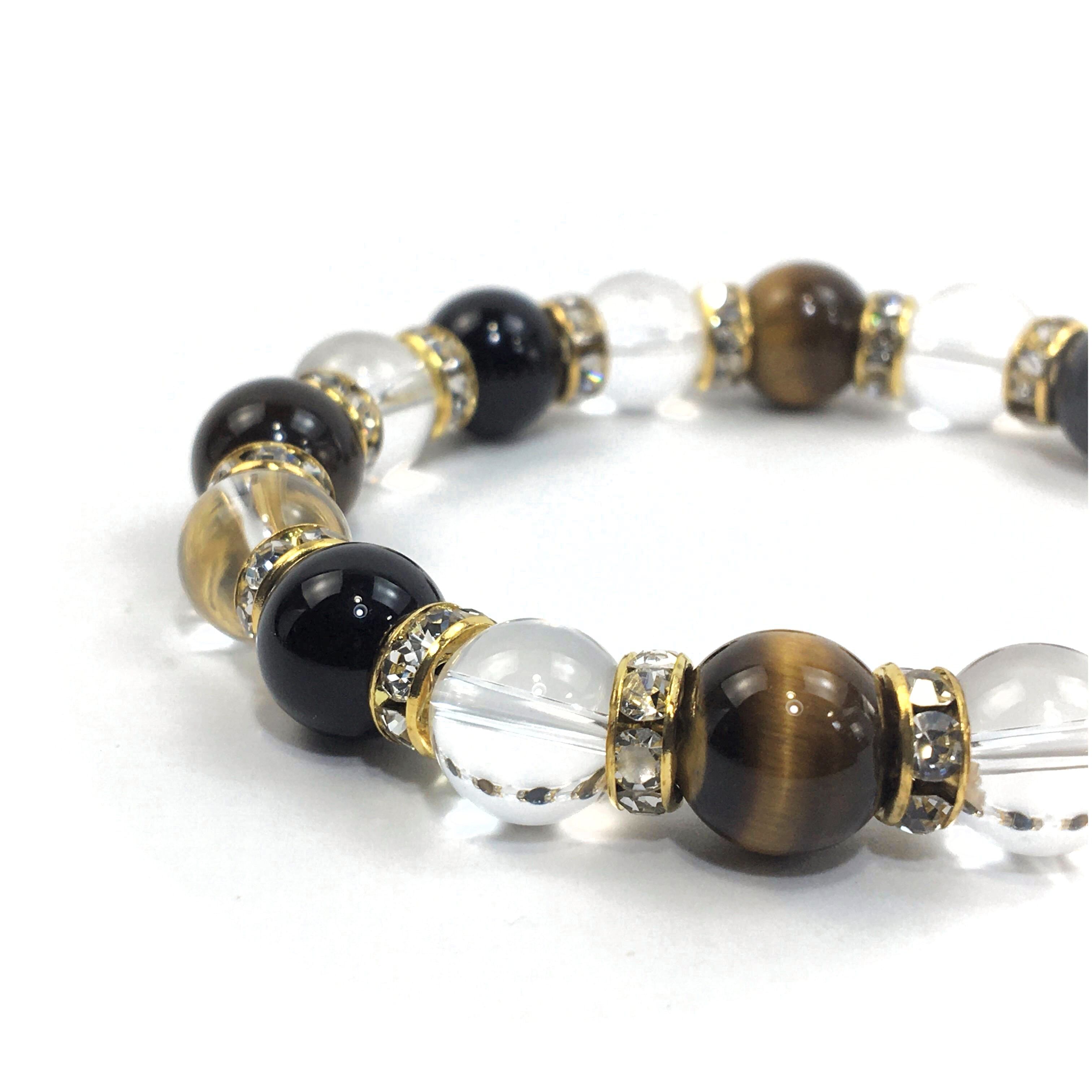 タイガーアイ×水晶×オニキス パワーストーン ブレスレット 10mm(ゴールド)メンズ・レディース 男性・女性 数珠ブレス 開運 ☆
