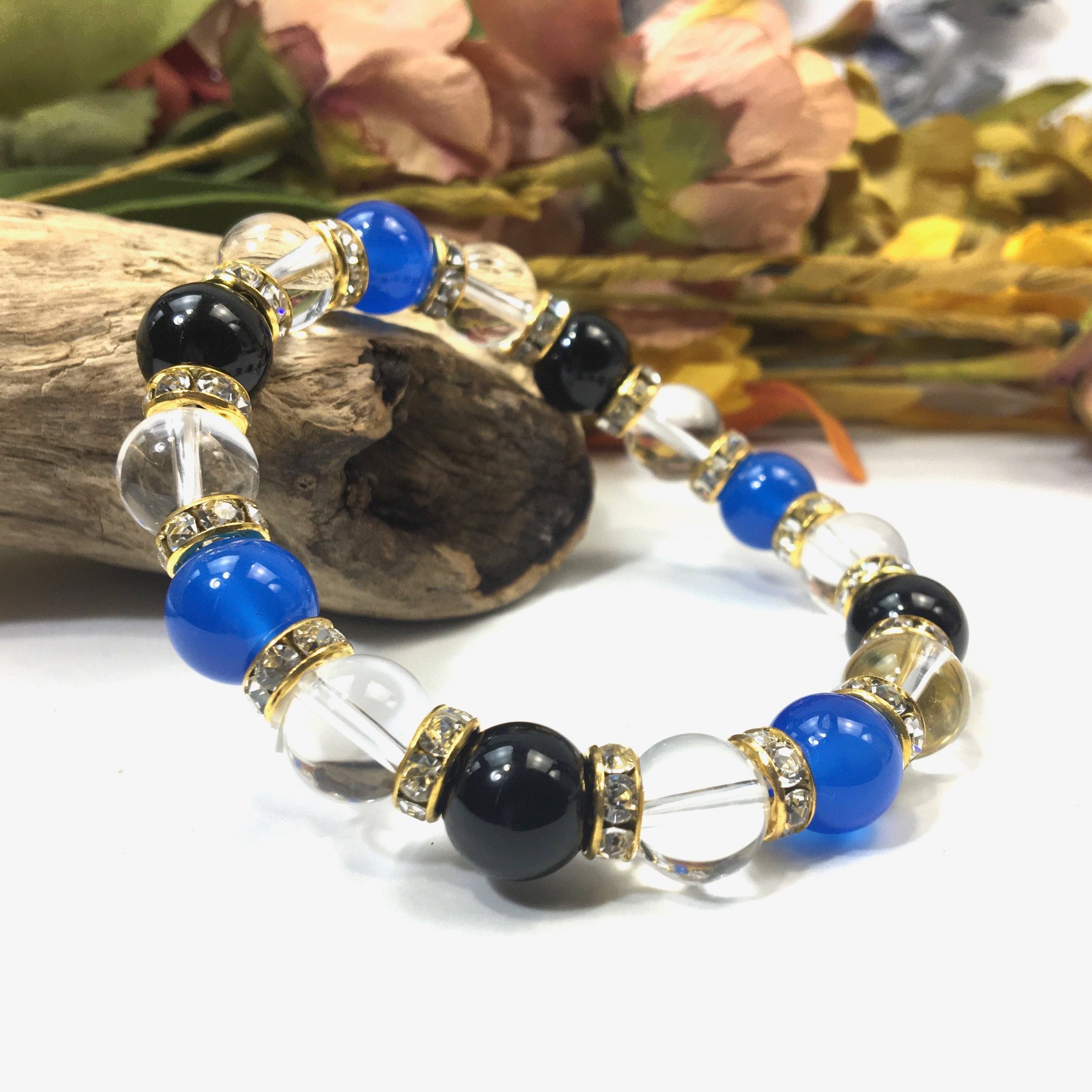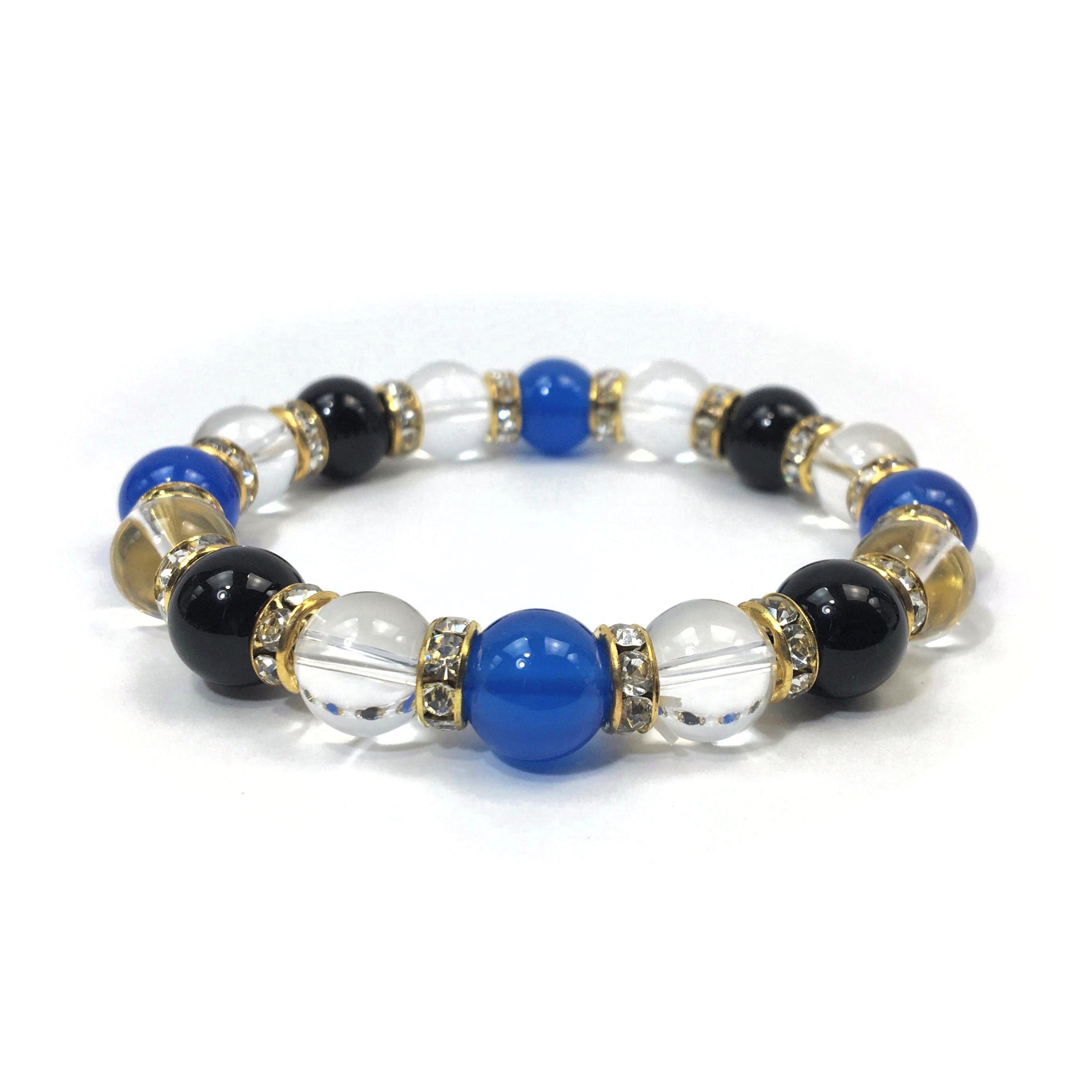 ブルーメノウ×水晶×オニキス パワーストーン ブレスレット 10mm(ゴールド)メンズ・レディース 男性・女性 数珠ブレス 開運 ☆