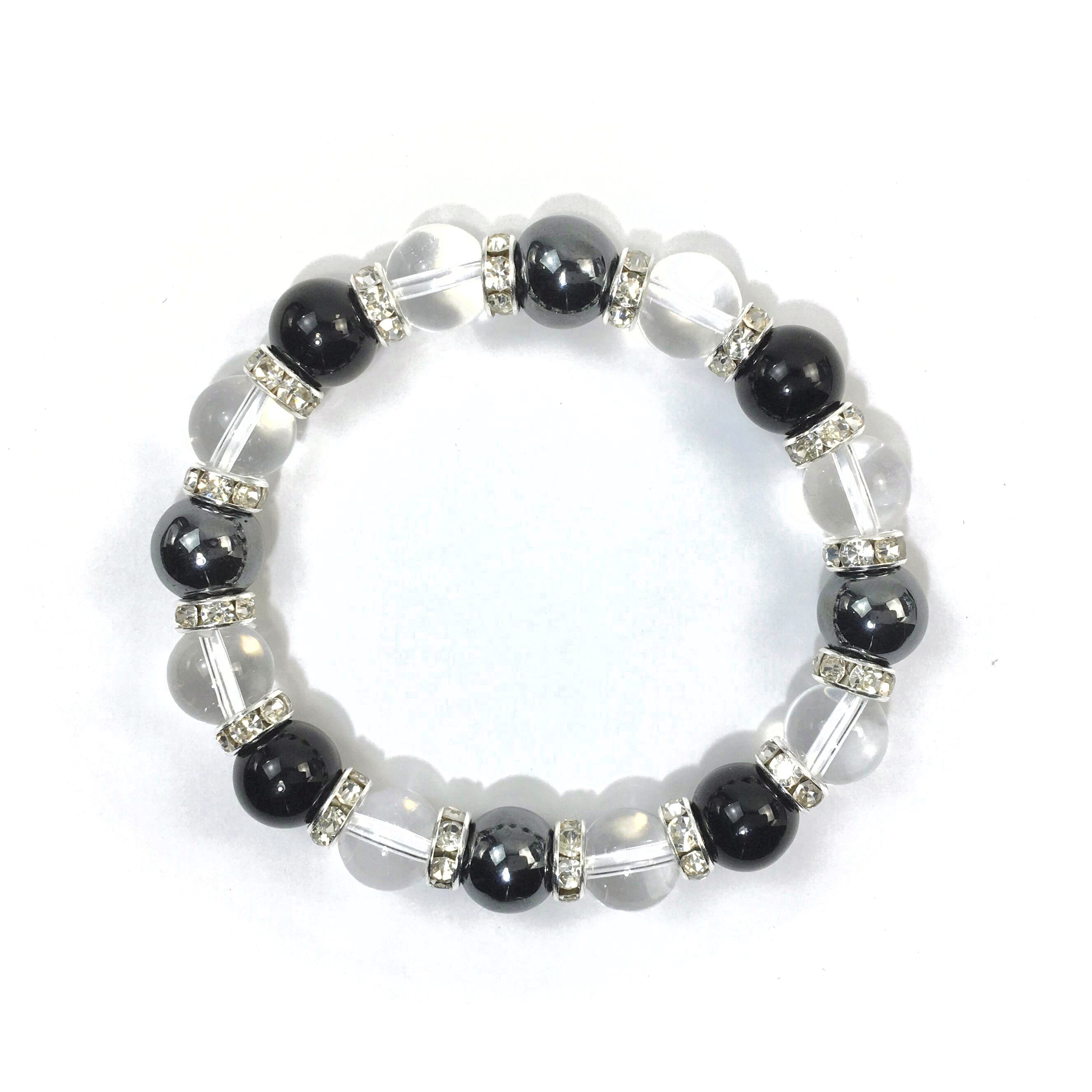 ヘマタイト×水晶×オニキス パワーストーン ブレスレット10mm(シルバー)メンズ・レディース 男性・女性 数珠ブレス 開運 ☆