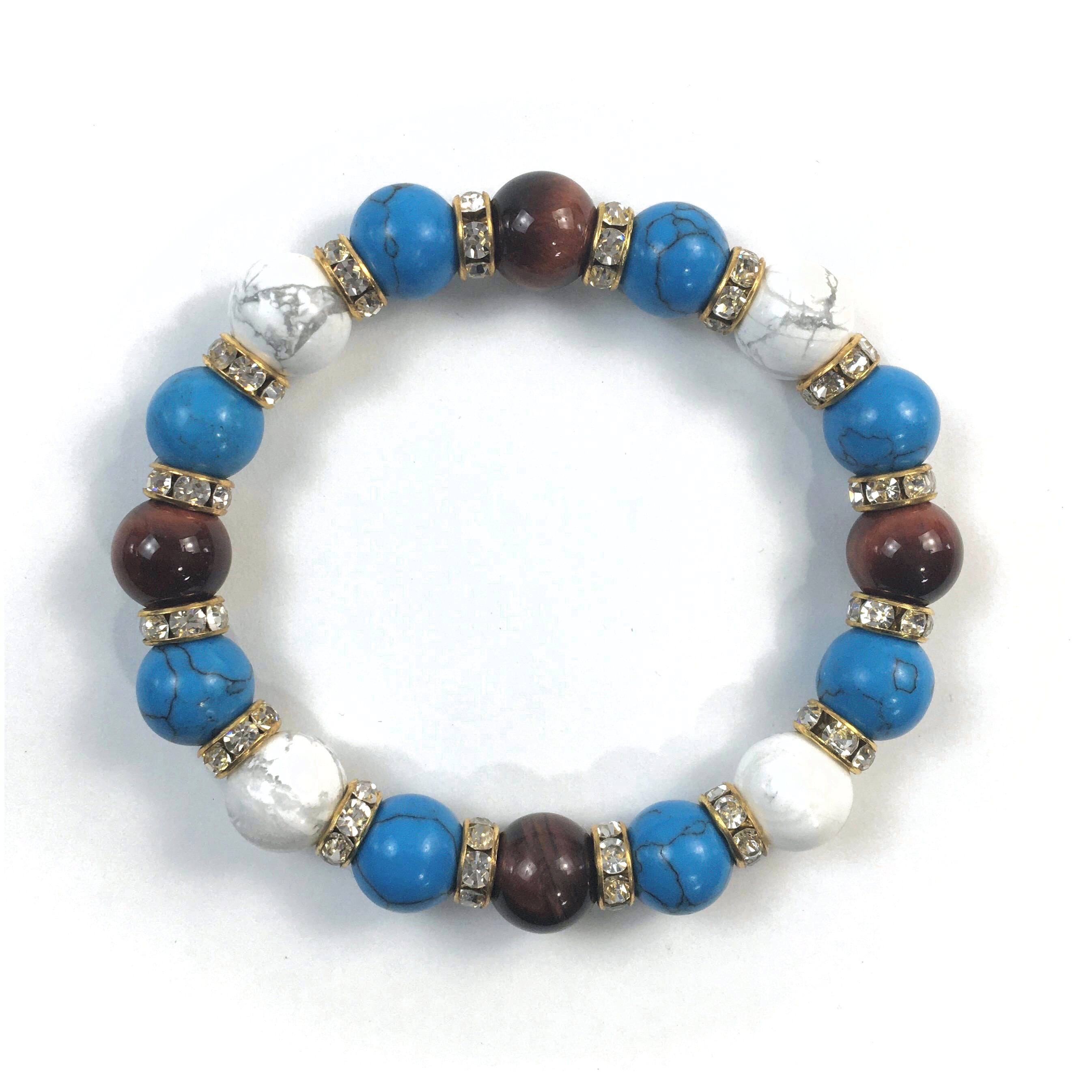 レッドタイガーアイ×ハウライト×ターコイズ パワーストーンブレス 10mm(ゴールド)メンズ・レディース 男性・女性 数珠ブレス 開運 ☆