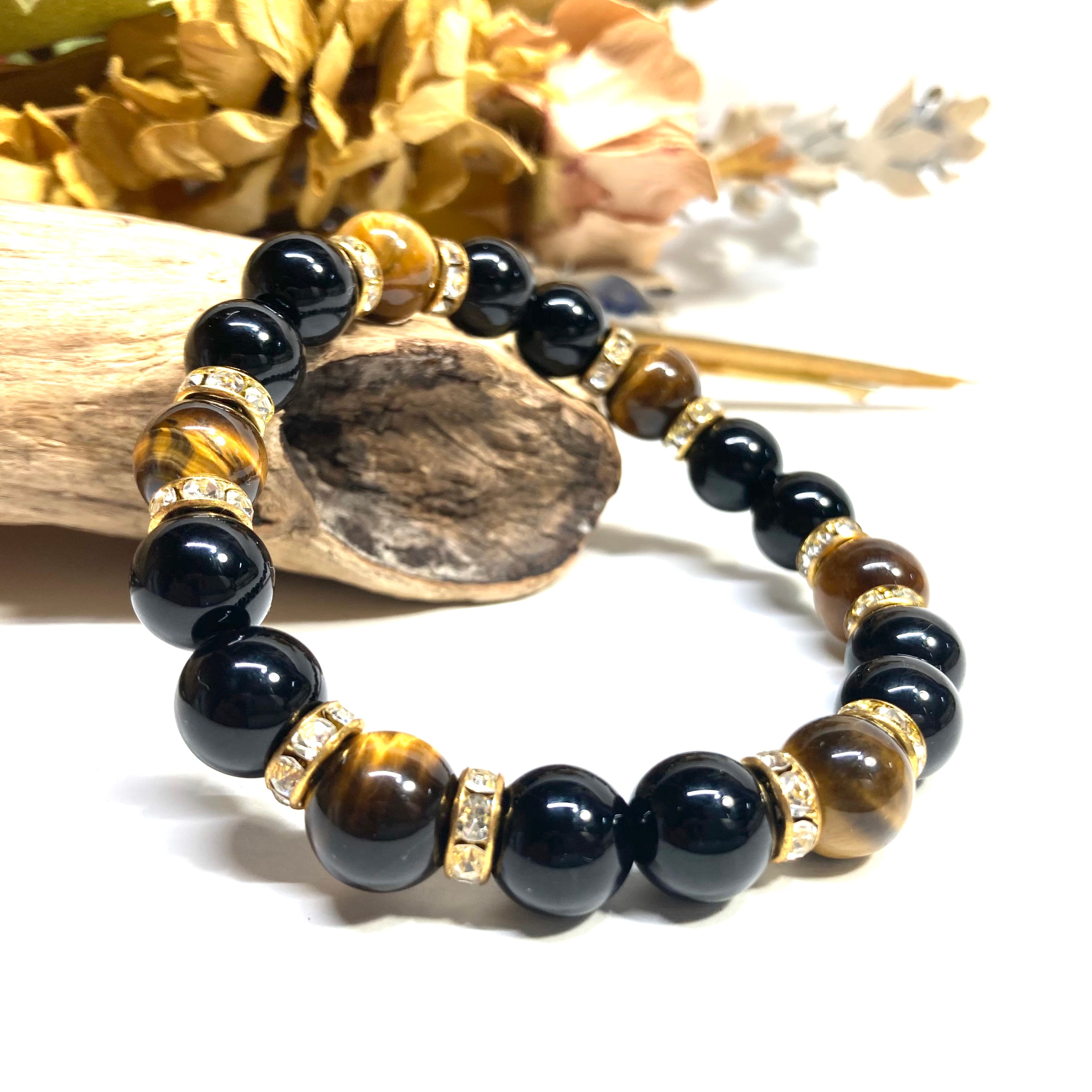 モリオン&タイガーアイ パワーストーン ブレスレット 天然石ブレス (ゴールド) 10mm メンズ・レディース 厄除け 金運 お守り ☆