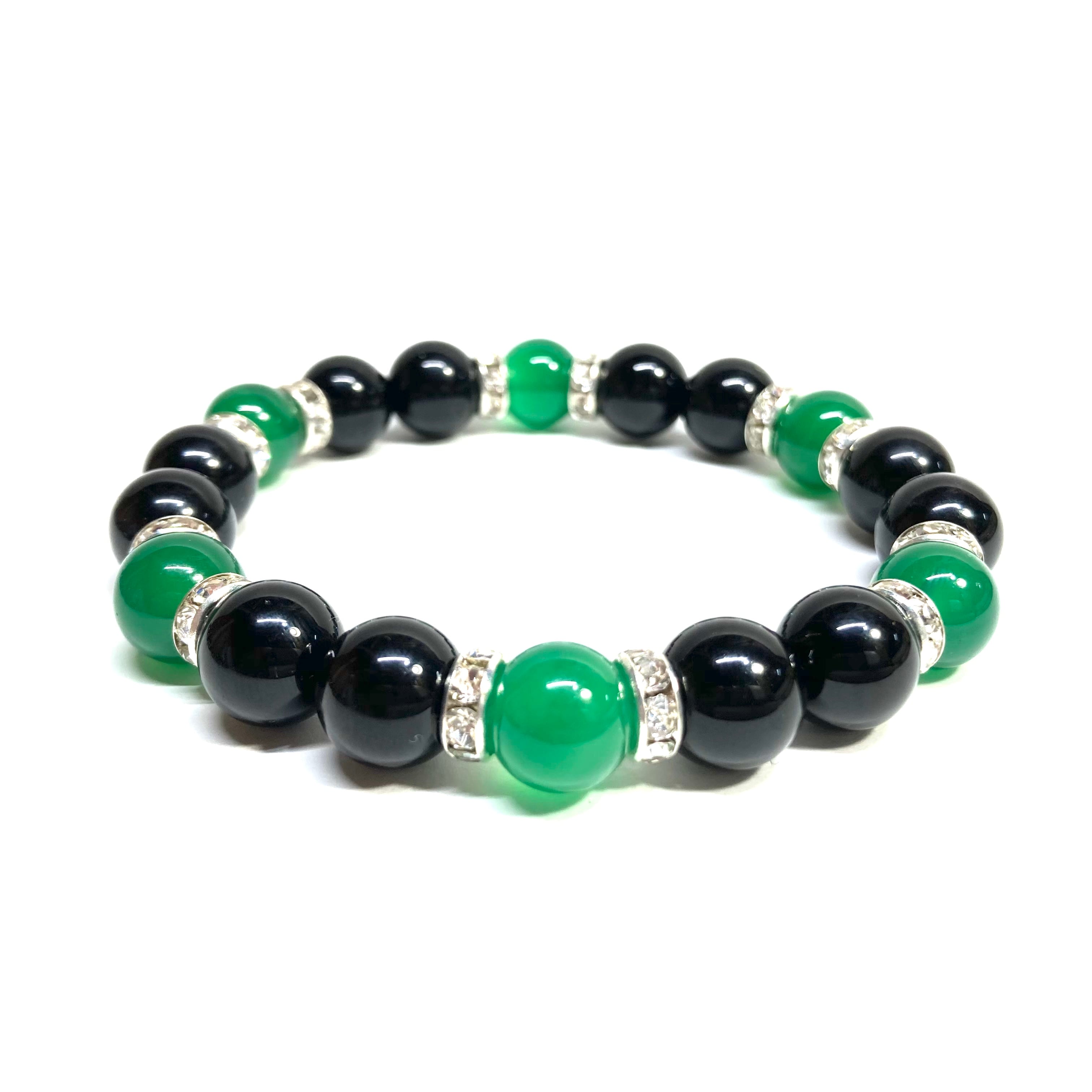モリオン&緑瑪瑙 パワーストーン ブレスレット 天然石ブレス (シルバー) 10mm メンズ・レディース 厄除け 健康運 お守り ☆