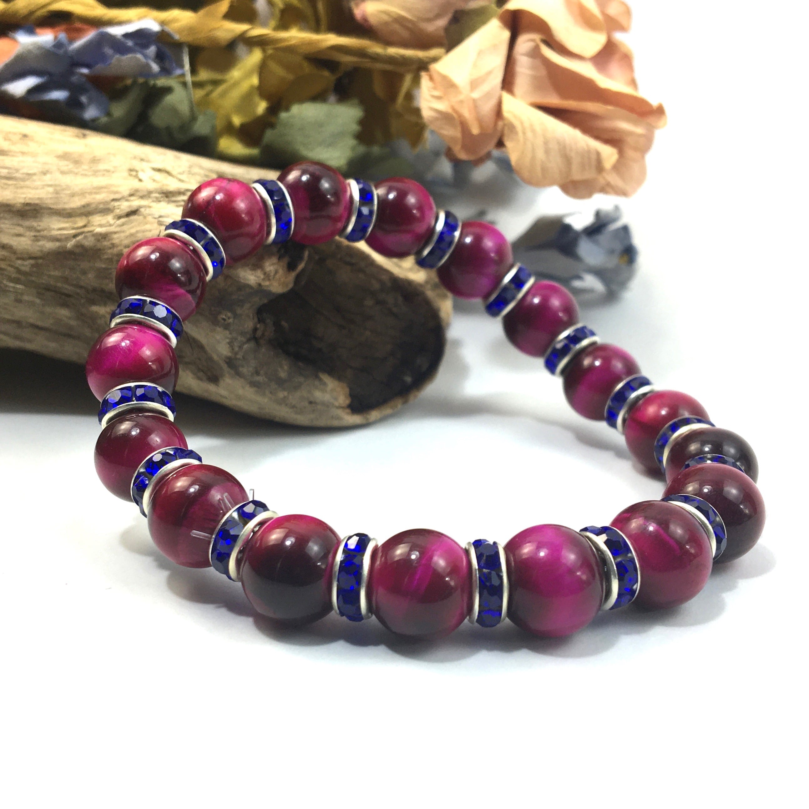 ピンクタイガーアイ パワーストーン ブレスレット 10mm (ダークブルー)メンズ・レディース 男性・女性 数珠ブレス  開運 ☆