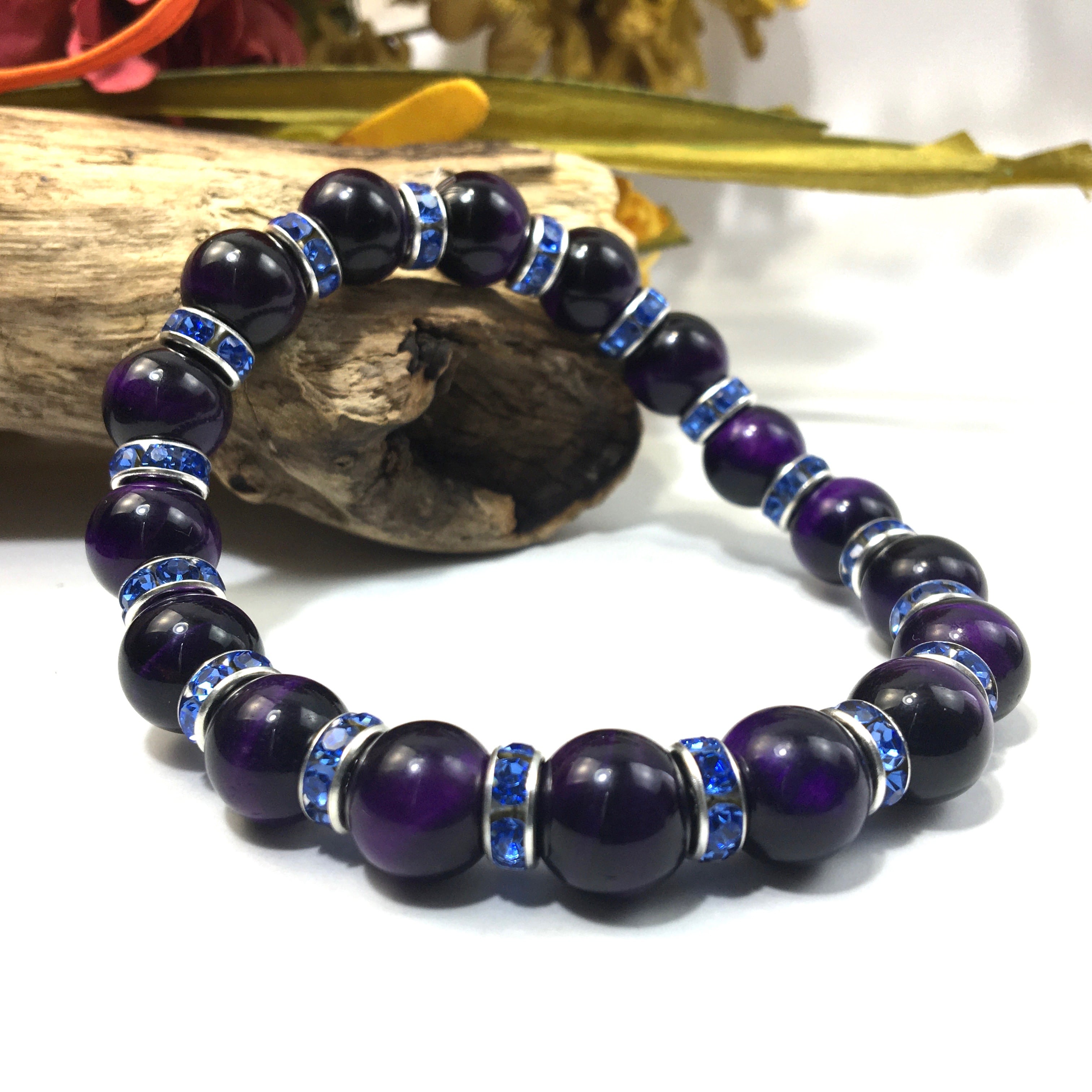 パープルタイガーアイ パワーストーン ブレスレット 10mm (ブルー)メンズ・レディース 男性・女性 数珠ブレス 開運 ☆