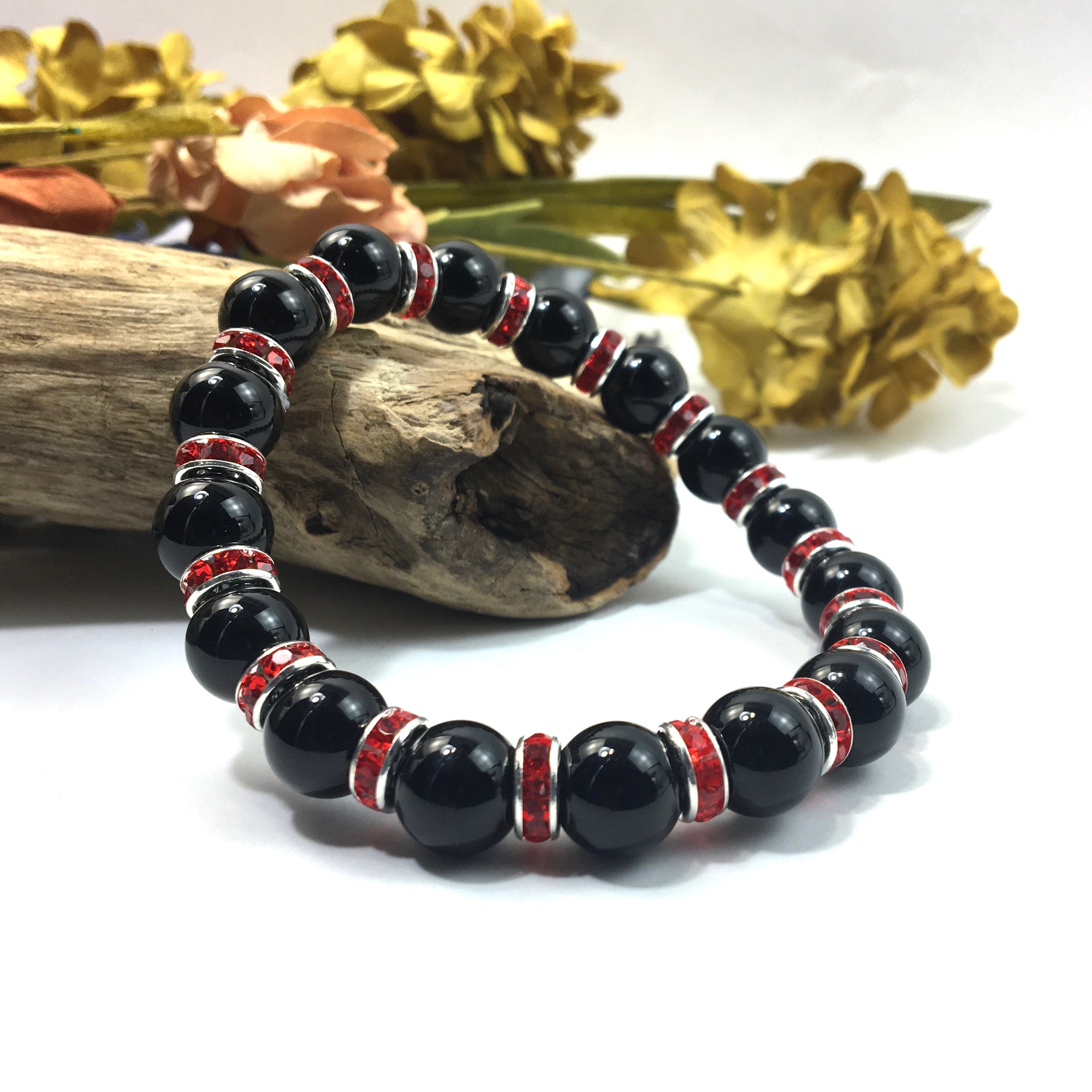 オニキス パワーストーン ブレスレット 天然石 10mm (レッド)メンズ・レディース 男性・女性 数珠ブレス  開運 ☆