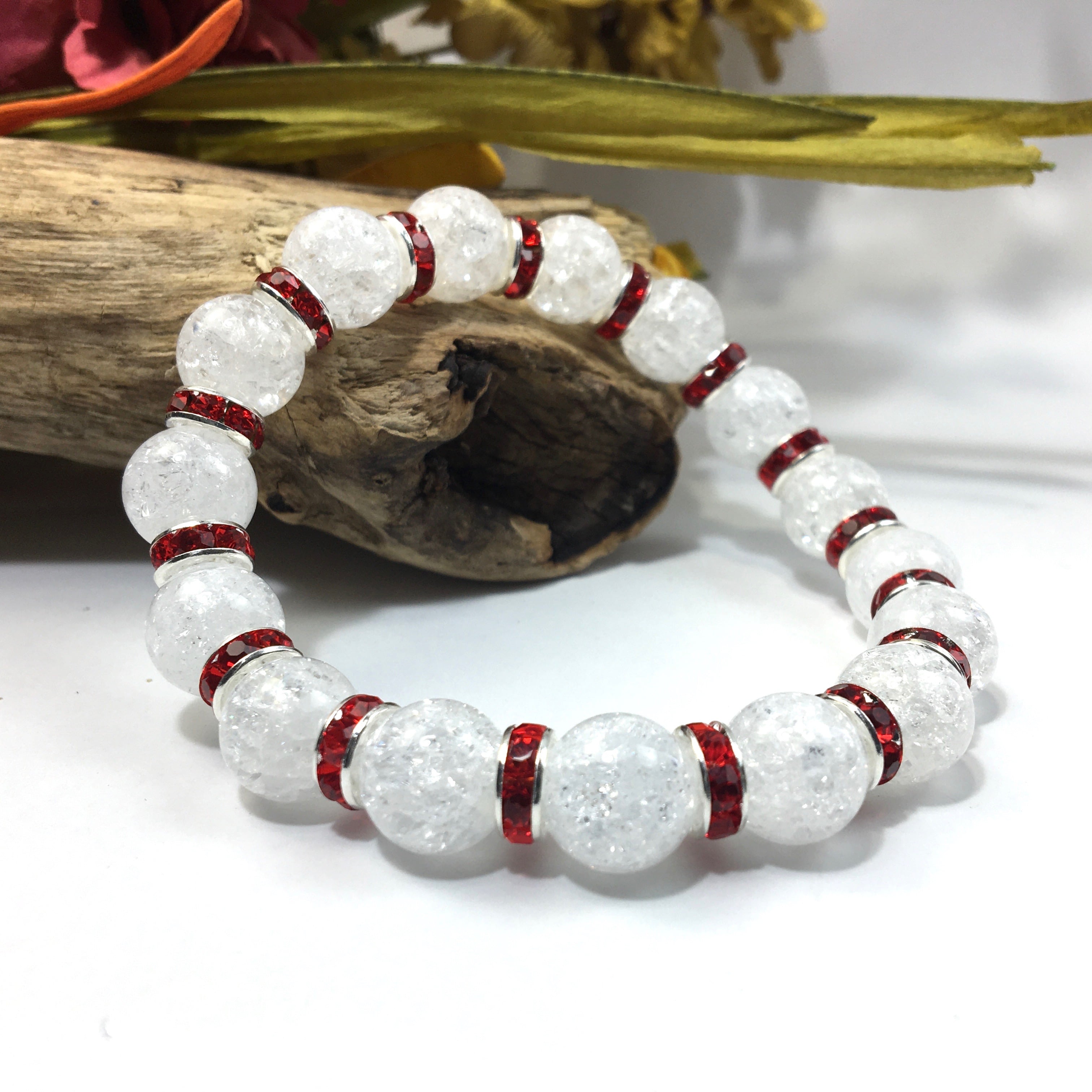 クラック水晶 パワーストーン ブレスレット 天然石 10mm (レッド)メンズ・レディース 男性・女性 数珠ブレス 開運 ☆