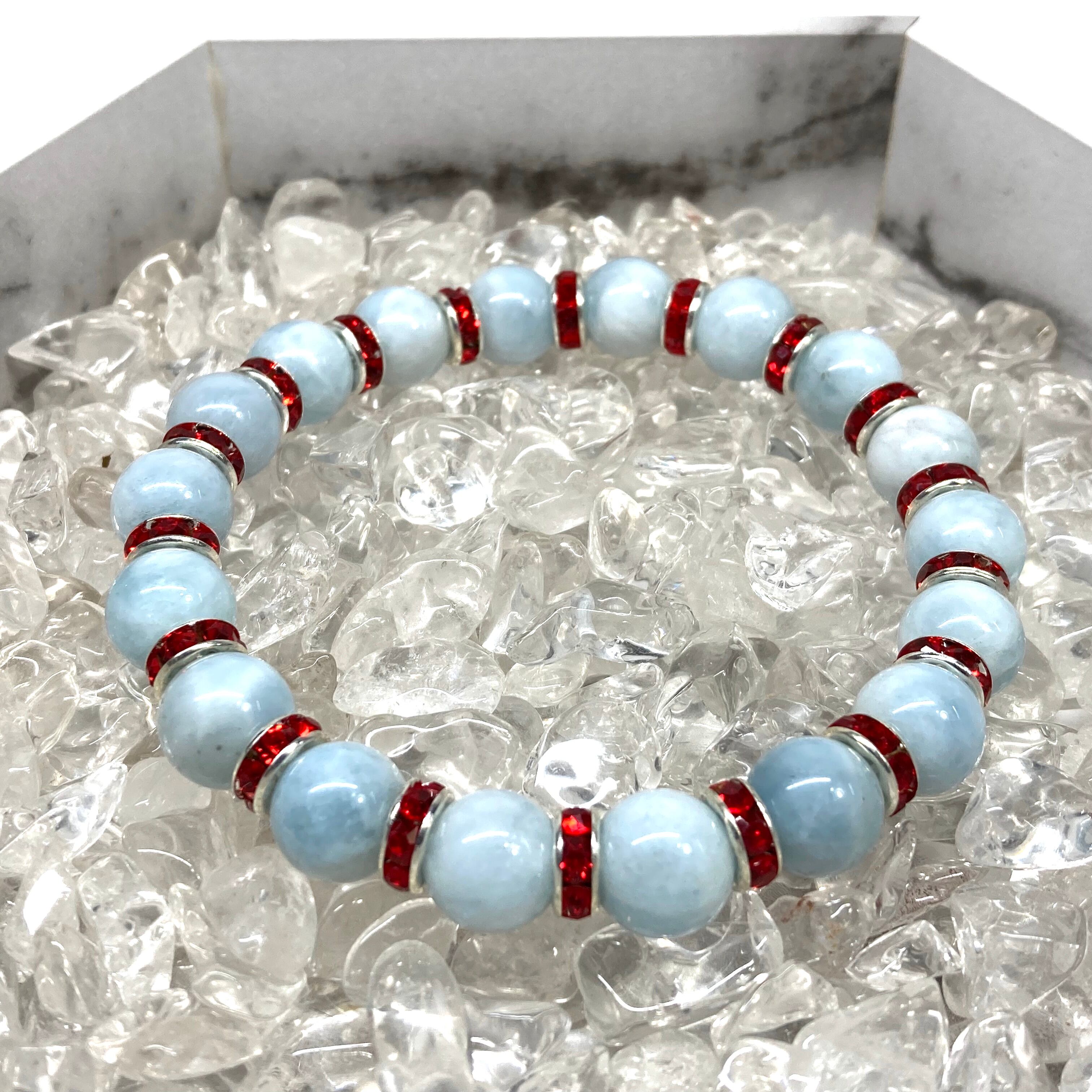 アクアマリン パワーストーン ブレスレット 10mm 天然石 10mm (レッド)メンズ・レディース 男性・女性 数珠ブレス 開運 ☆