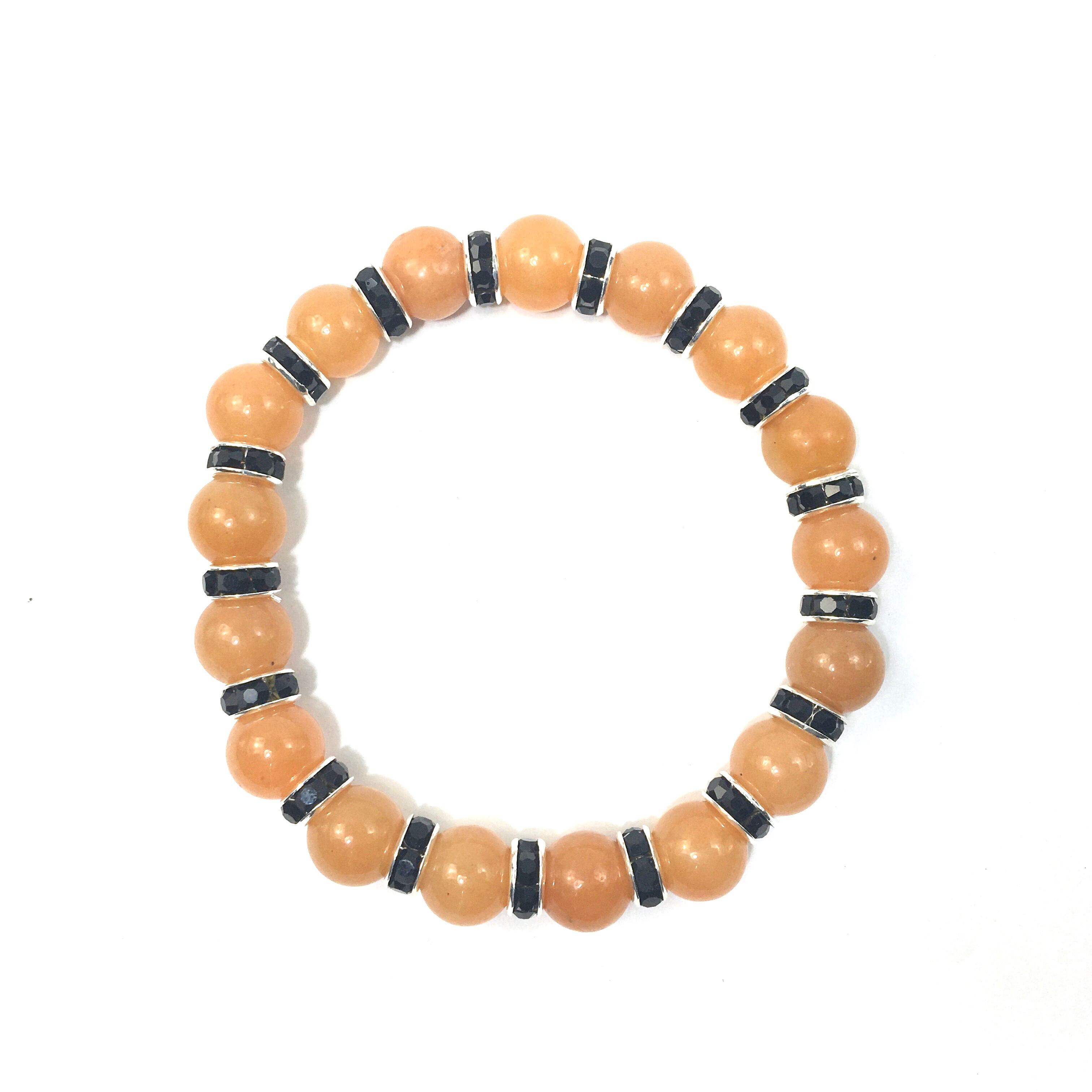 アベンチュリンと同様に癒しのパワーを持った石です。持ち主のエネルギーを穏やかなパワーで補い、潜在意識の中にあるネガティブな意識を取りのぞいてくれると言われています。また、付ける人に運を呼びチャンスをもたらし、逆境を乗り越えるパワーを与えてくれるとも言われ、行動力と情熱をおこさせてくれます。 明るい色合いから「恋」を実らせる効果もあるといわれています。