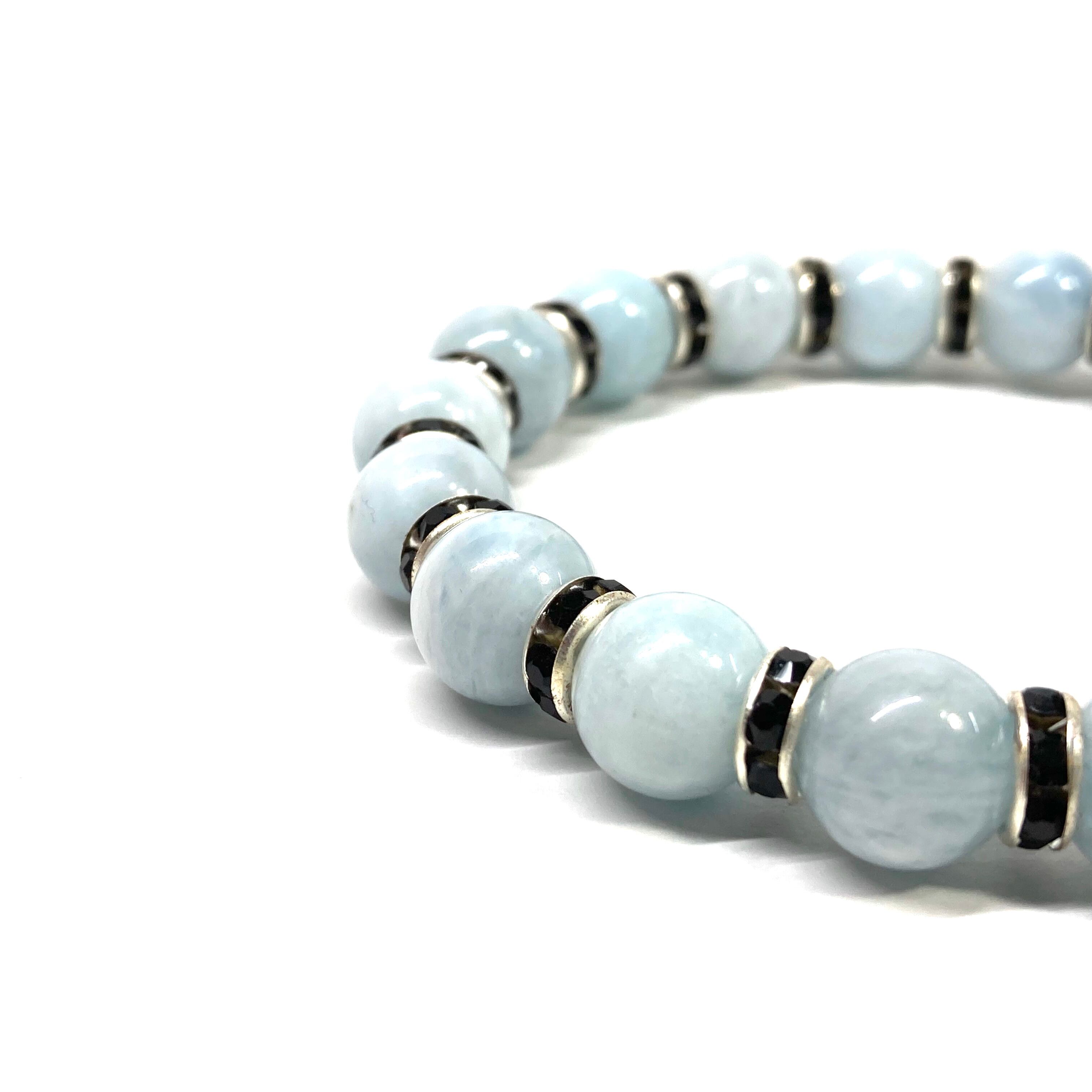 アクアマリン パワーストーン ブレスレット 10mm 天然石 10mm (ブラック)メンズ・レディース 男性・女性 数珠ブレス  開運 ☆