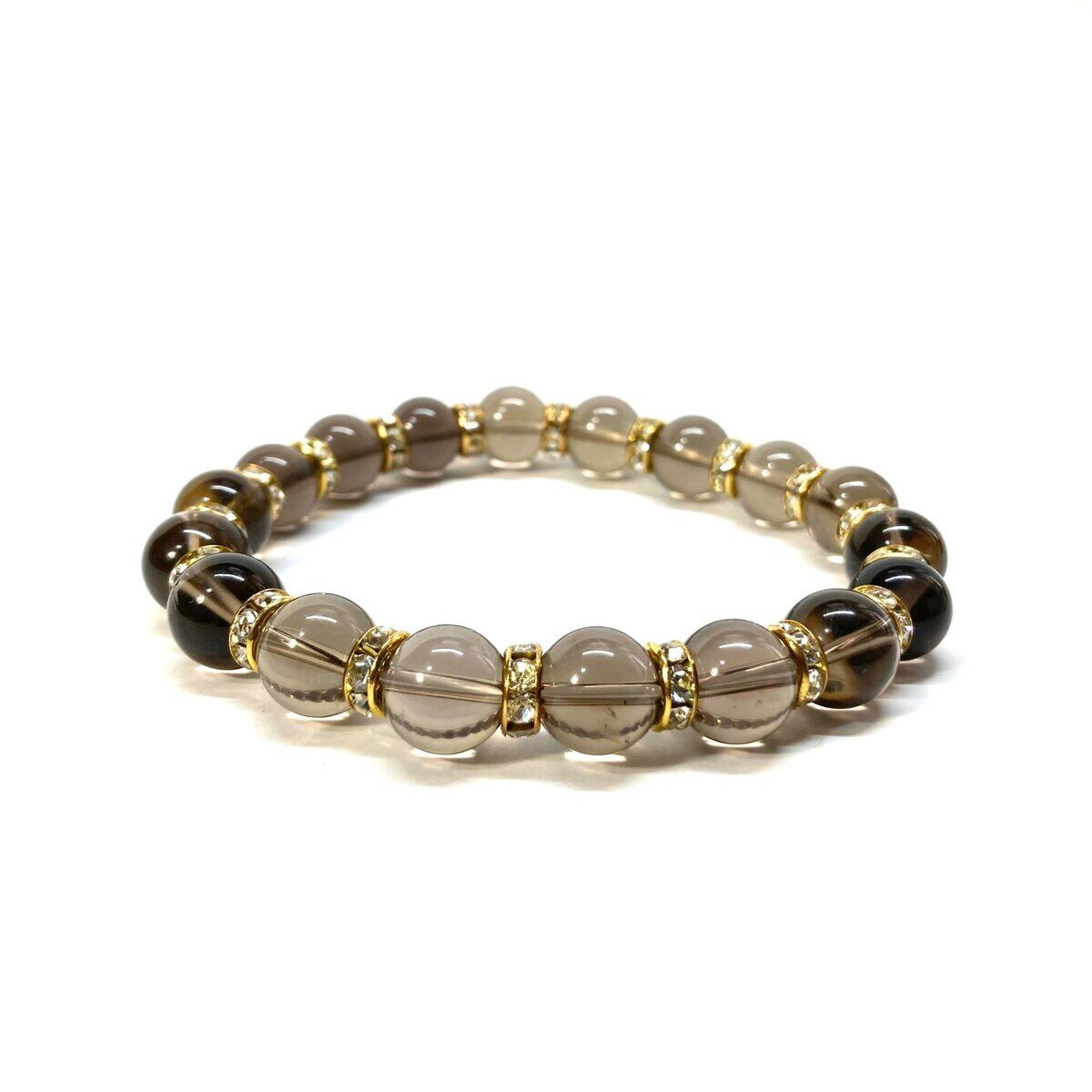 スモーキークォーツ パワーストーン ブレスレット 10mm (ゴールド)メンズ・レディース 男性・女性 数珠ブレス  開運 ☆