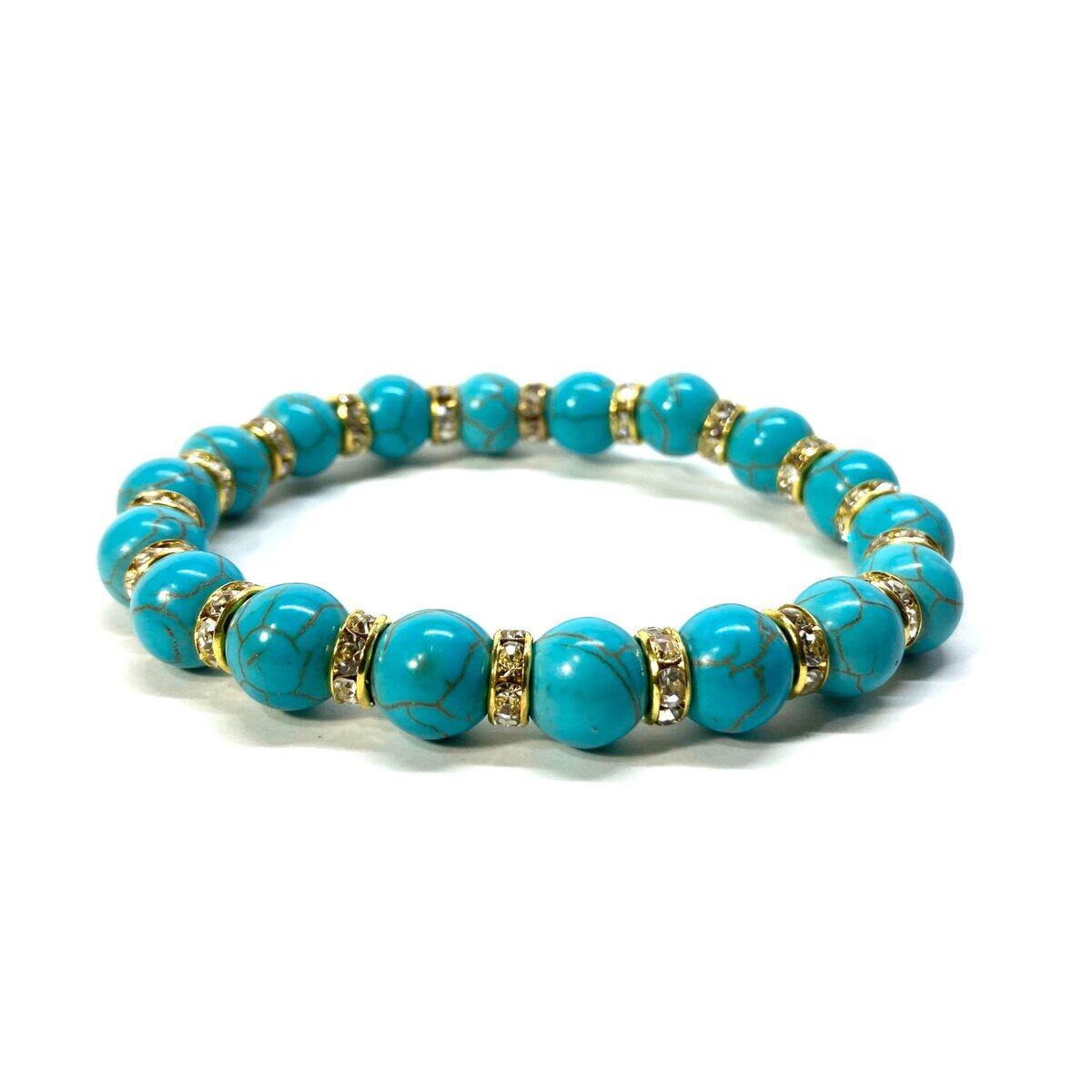 ターコイズ パワーストーン ブレスレット 10mm #2 (ゴールド)メンズ・レディース 男性・女性 数珠ブレス 開運 ☆