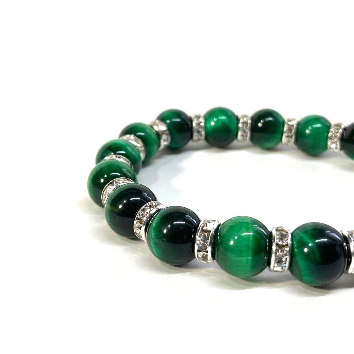 グリーンタイガーアイ パワーストーン ブレスレット 10mm (シルバー)メンズ・レディース 男性・女性 数珠ブレス  開運 ☆