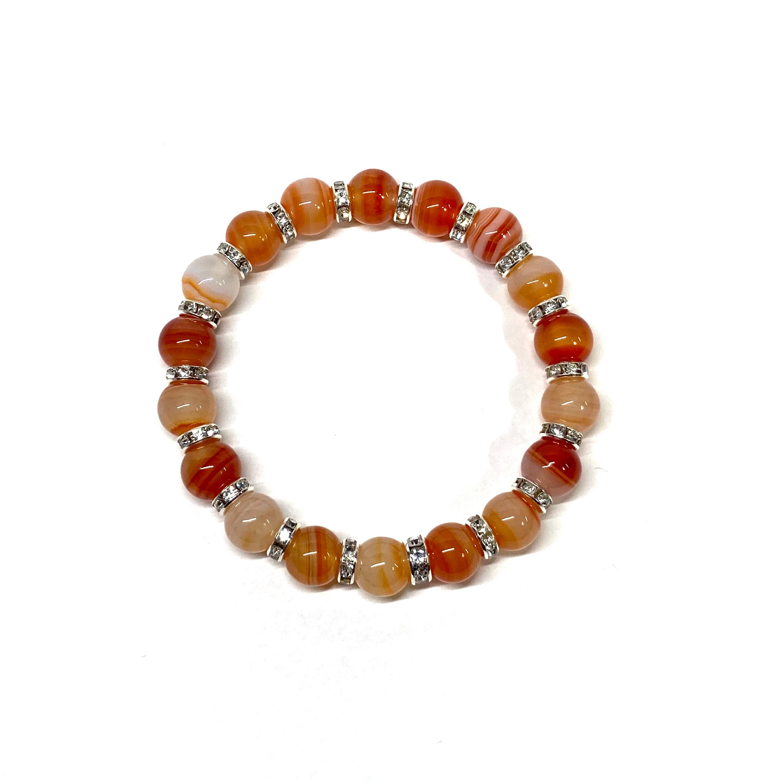 カーネリアン・サードニクス パワーストーン ブレスレット 10mm (シルバー)メンズ・レディース 男性・女性 数珠ブレス 開運 ☆