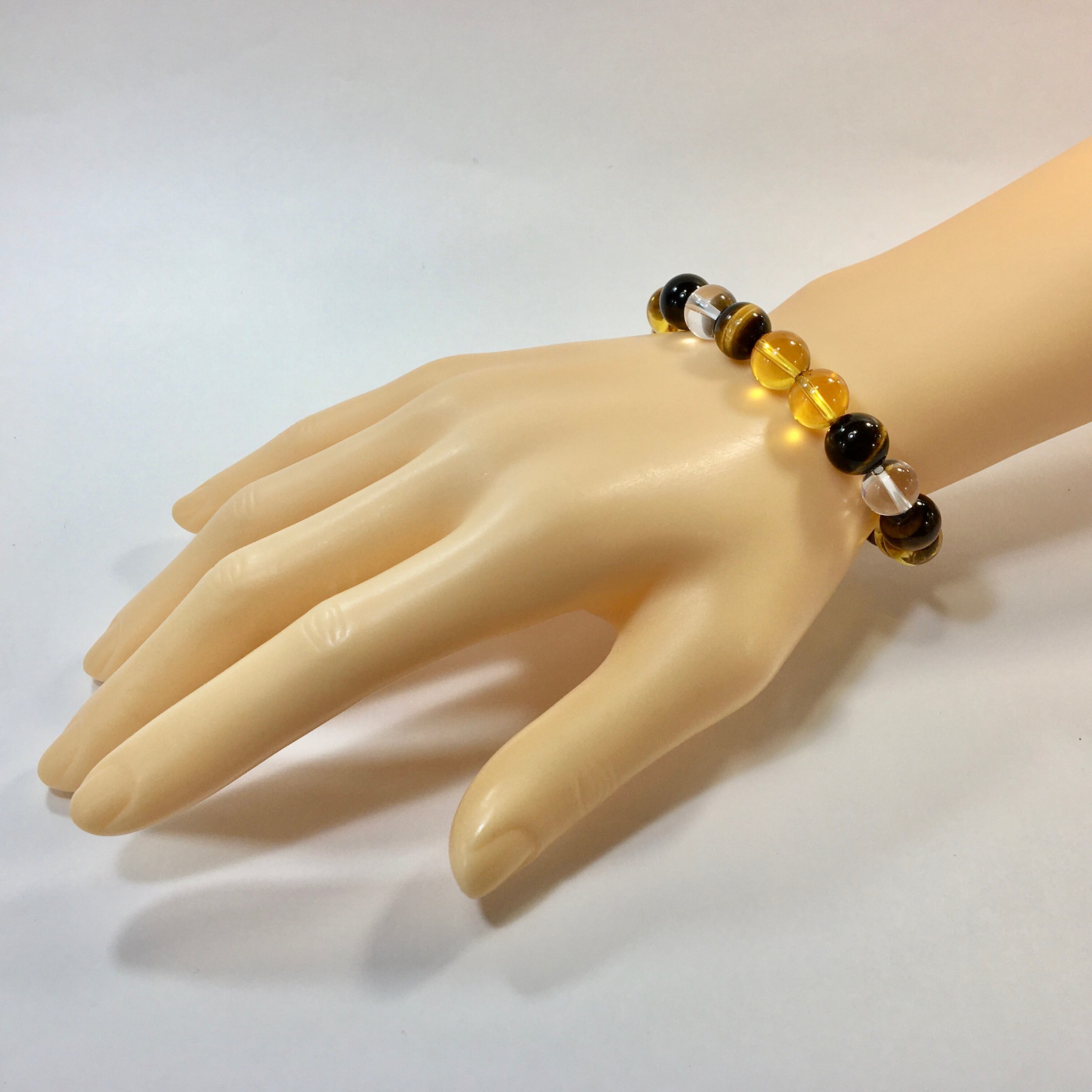 水晶×タイガーアイ×シトリン パワーストーン ブレスレット 10mm 天然石 メンズ・レディース 男性・女性 数珠ブレス 開運 ☆