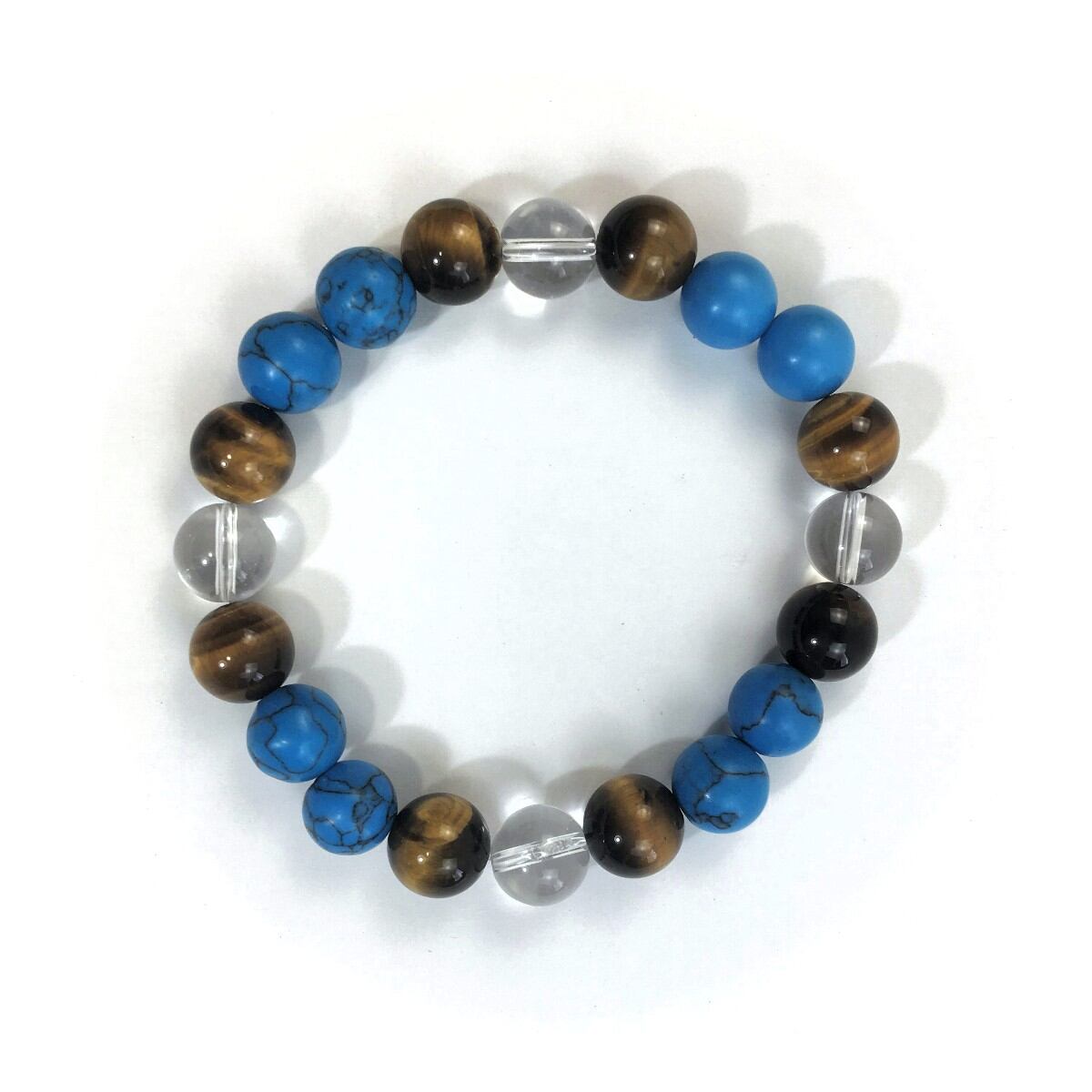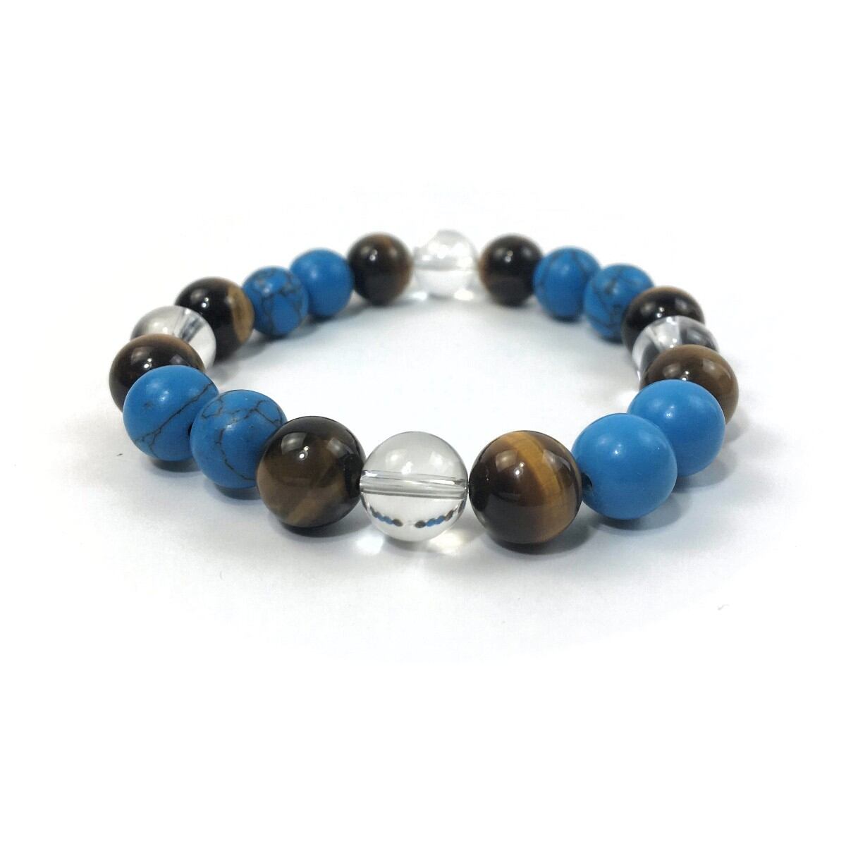水晶×タイガーアイ×ターコイズ パワーストーン ブレスレット 10mm 天然石 メンズ・レディース 男性・女性 数珠ブレス 開運 ☆
