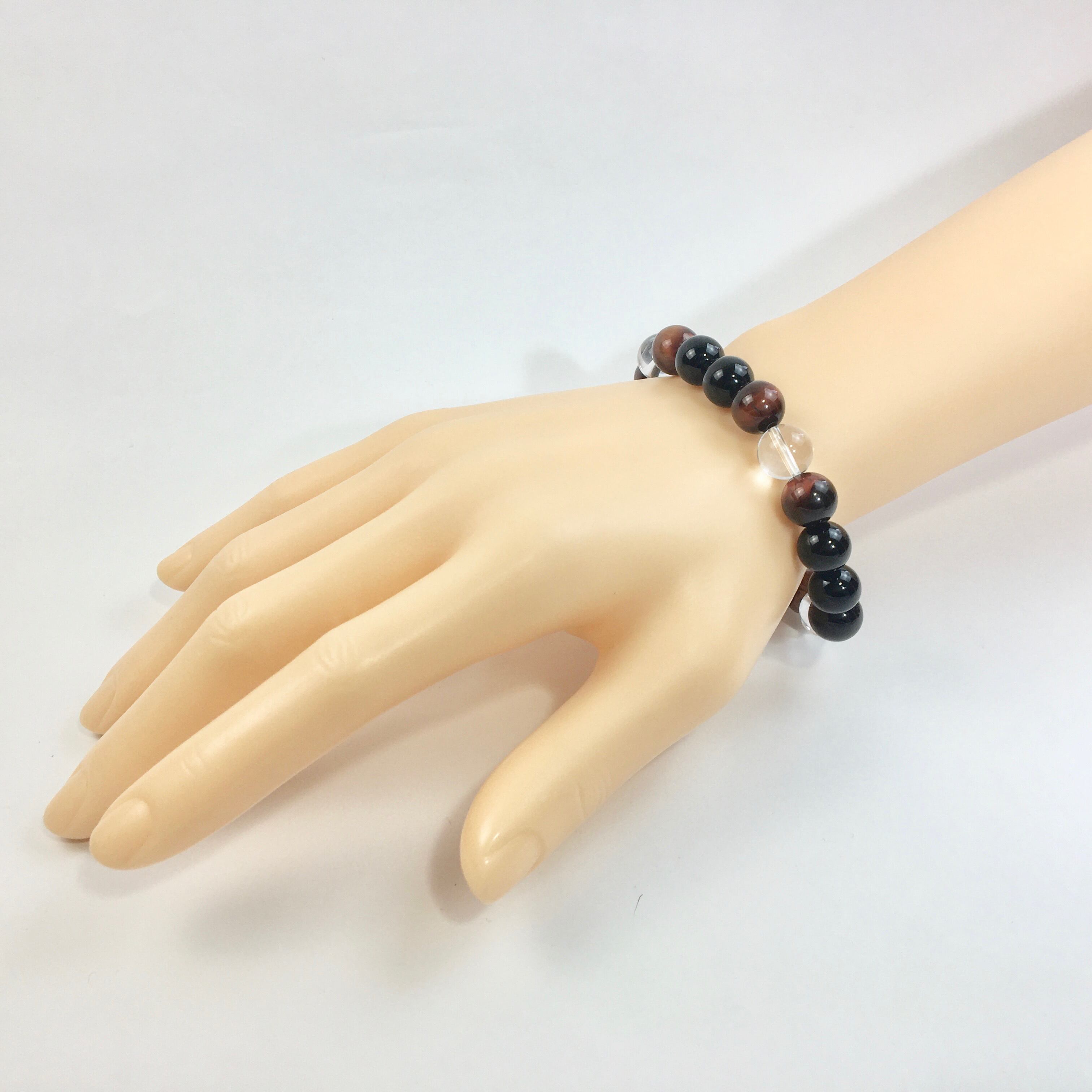 水晶×レッドタイガーアイ×オニキス パワーストーン ブレスレット 10mm 天然石 メンズ・レディース 男性・女性 数珠ブレス 開運 ☆