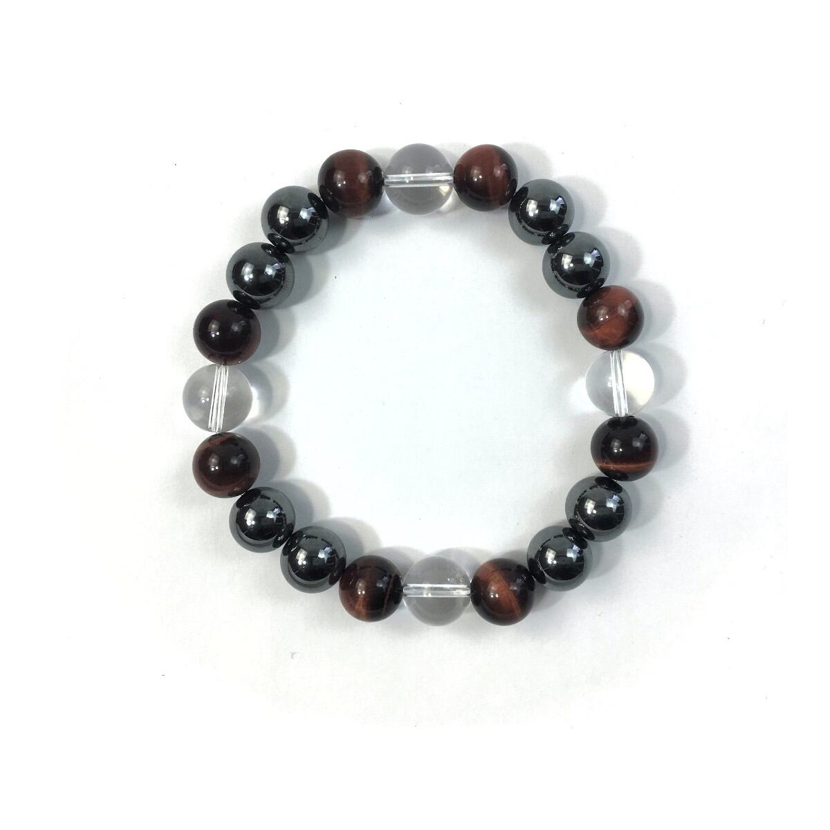 水晶×レッドタイガーアイ×ヘマタイト パワーストーン ブレスレット 10mm 天然石 メンズ・レディース 男性・女性 数珠ブレス 開運 ☆