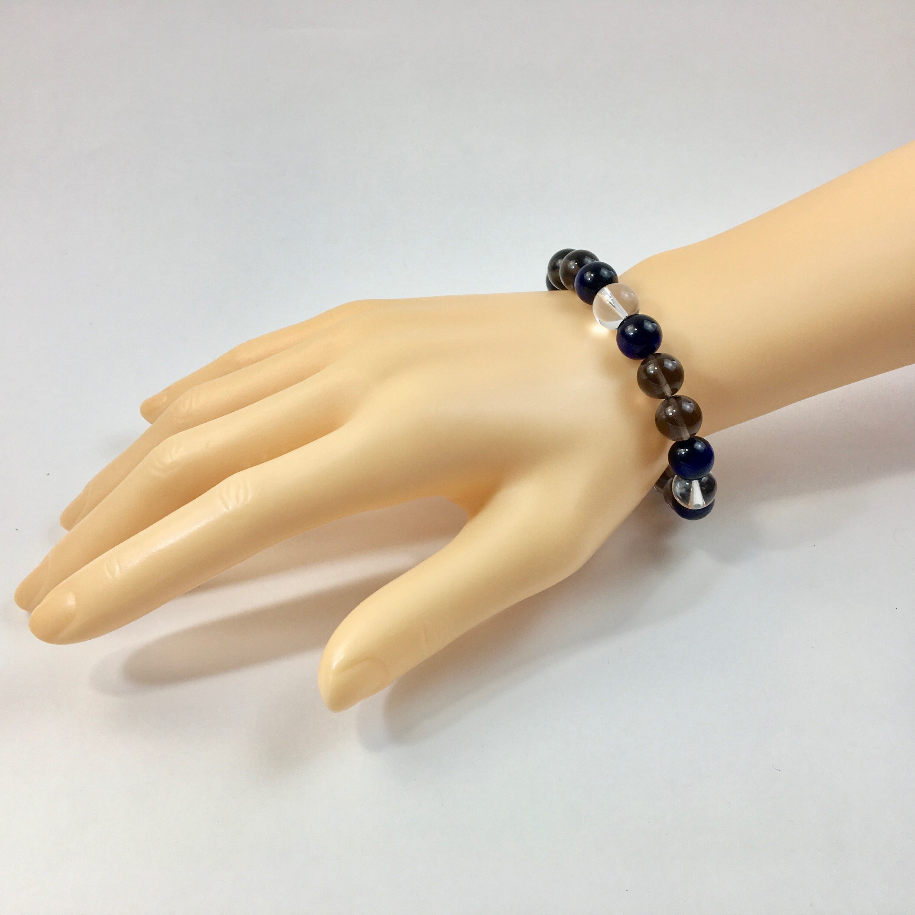 水晶×ブルータイガーアイ×スモーキークォーツ パワーストーン ブレスレット 10mm 天然石 メンズ・レディース 男性・女性 数珠ブレス 開運 ☆