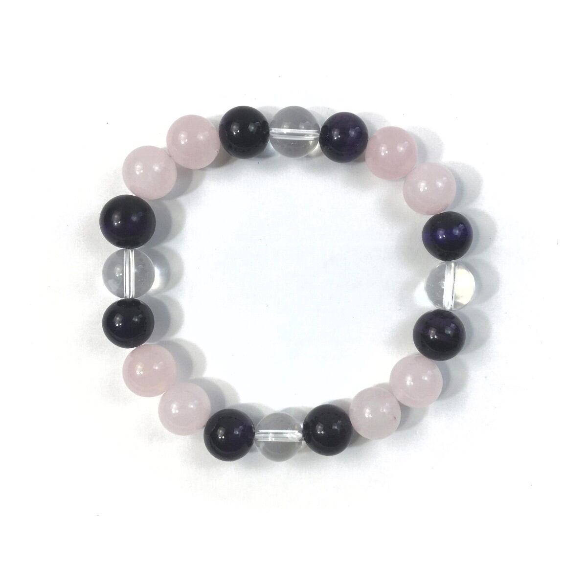 水晶×パープルタイガーアイ×ローズクォーツ パワーストーン ブレスレット 10mm 天然石 メンズ・レディース 男性・女性 数珠ブレス 開運 ☆