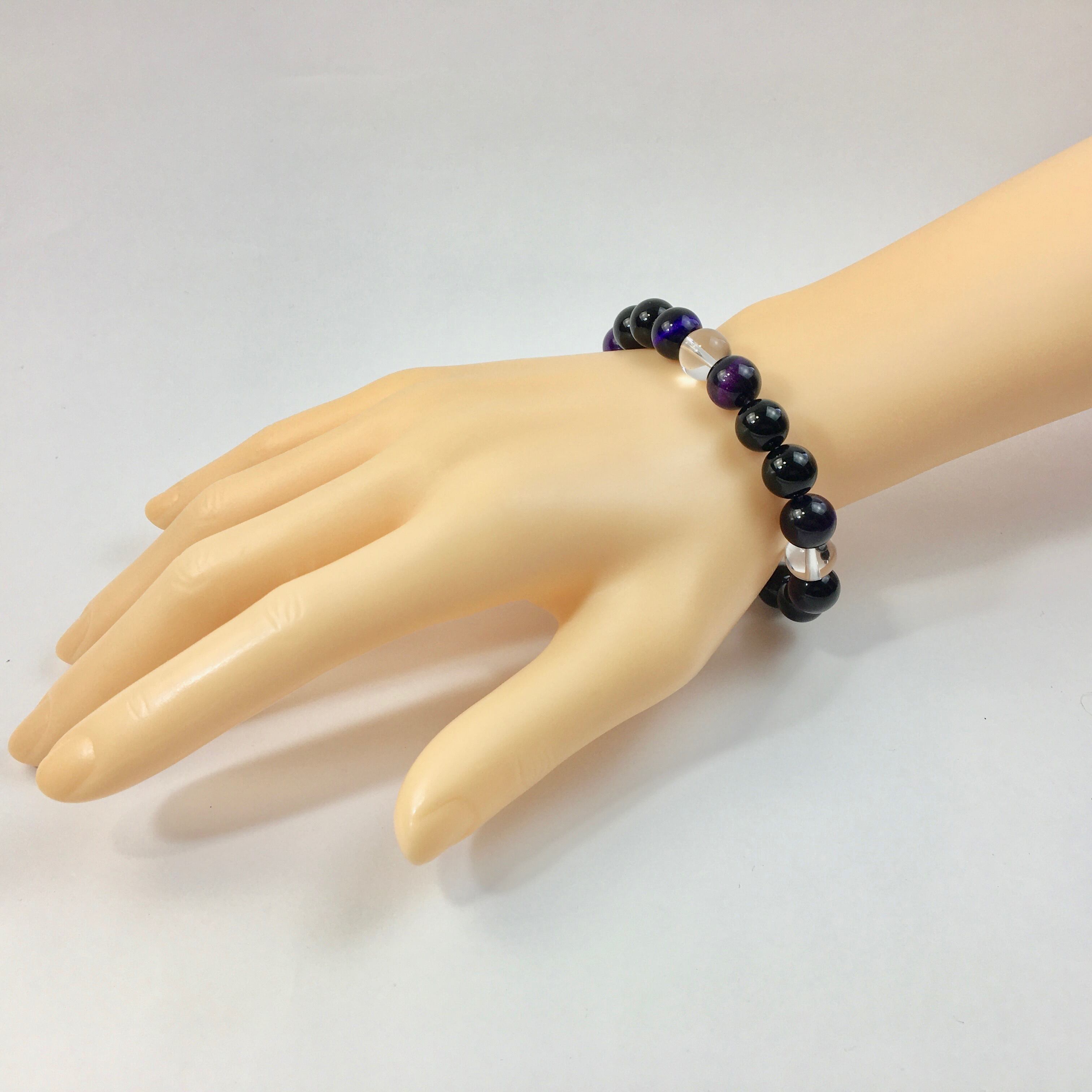 水晶×パープルタイガーアイ×オニキス パワーストーン ブレスレット 10mm 天然石 メンズ・レディース 男性・女性 数珠ブレス 開運 ☆