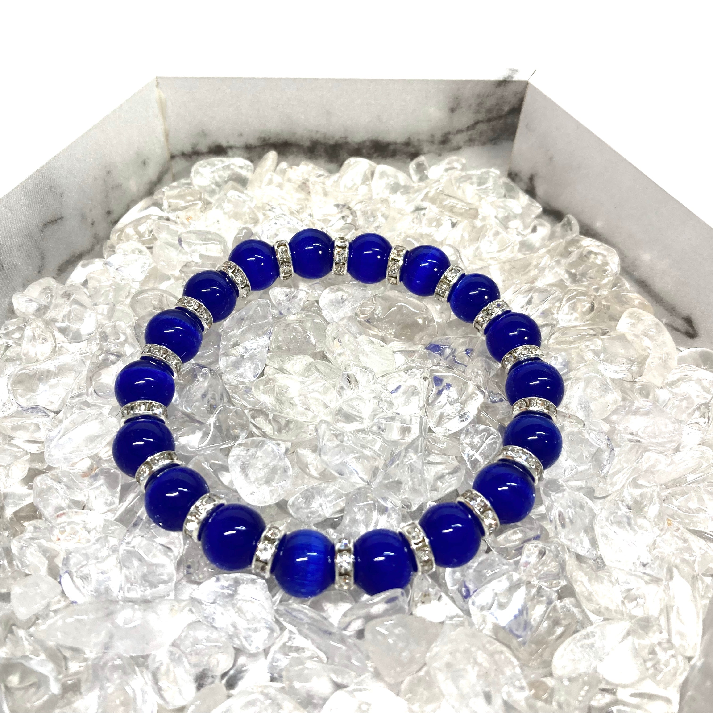 キャッツアイ(ダークブルー) パワーストーン ブレスレット (シルバー) メンズ・レディース 男性・女性 数珠ブレス 開運