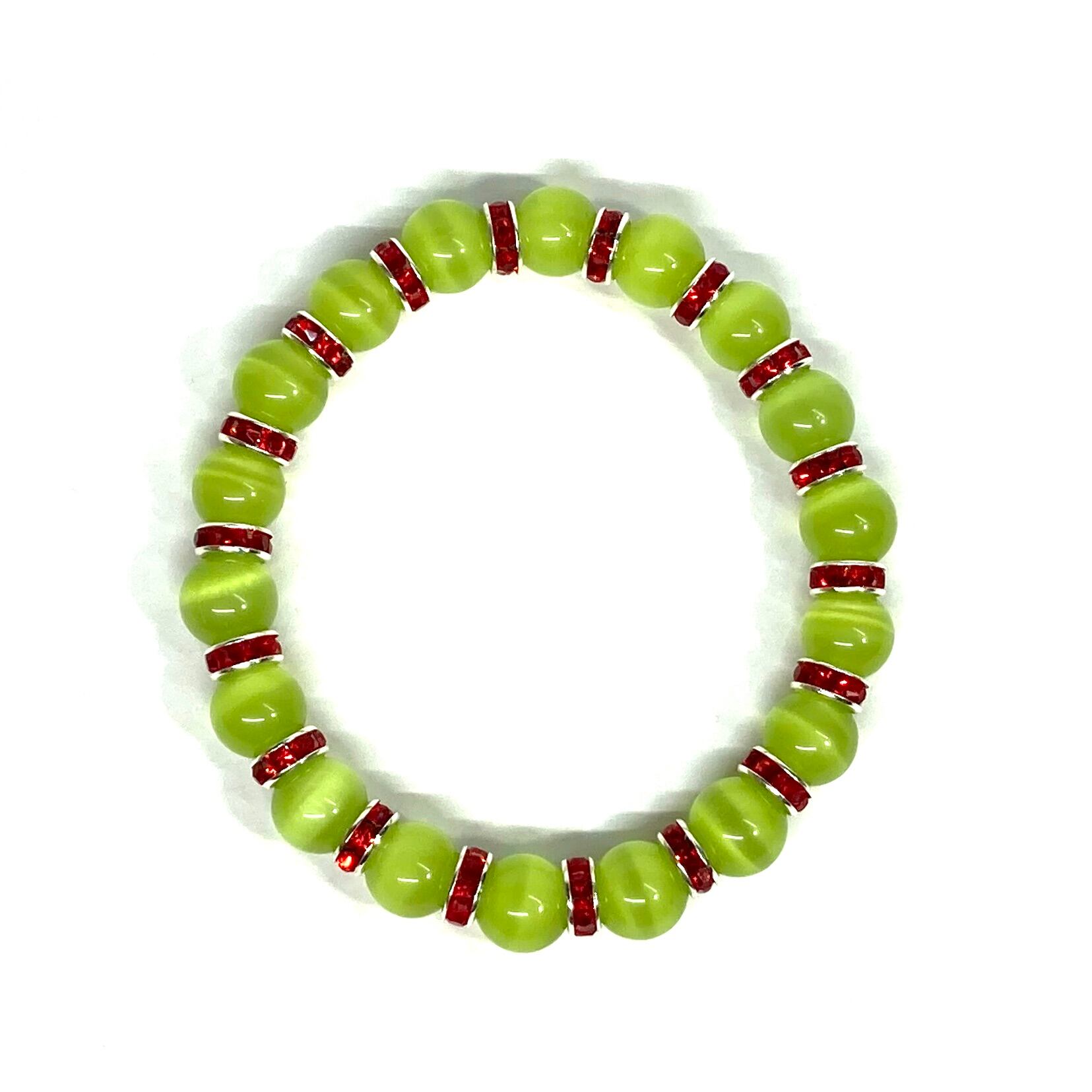 キャッツアイ(ライムグリーン) パワーストーン ブレスレット (レッド) メンズ・レディース 男性・女性 数珠ブレス 開運
