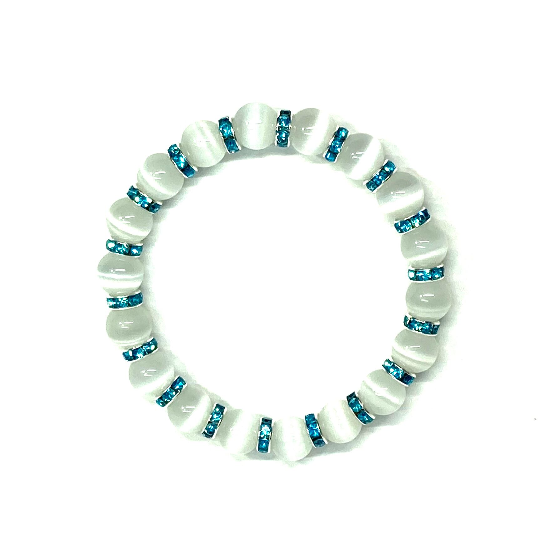 キャッツアイ(ホワイト) パワーストーン ブレスレット (ライトブルー) メンズ・レディース 男性・女性 数珠ブレス 開運