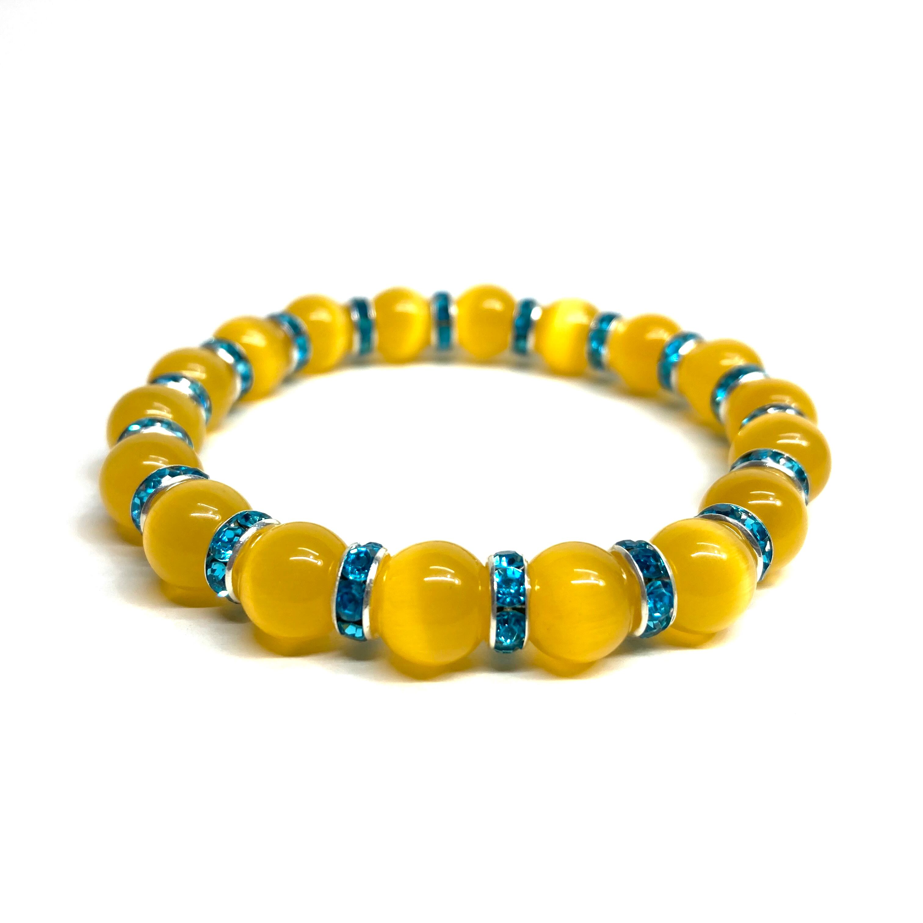 キャッツアイ(イエロー) パワーストーン ブレスレット (ライトブルー) メンズ・レディース 男性・女性 数珠ブレス 開運