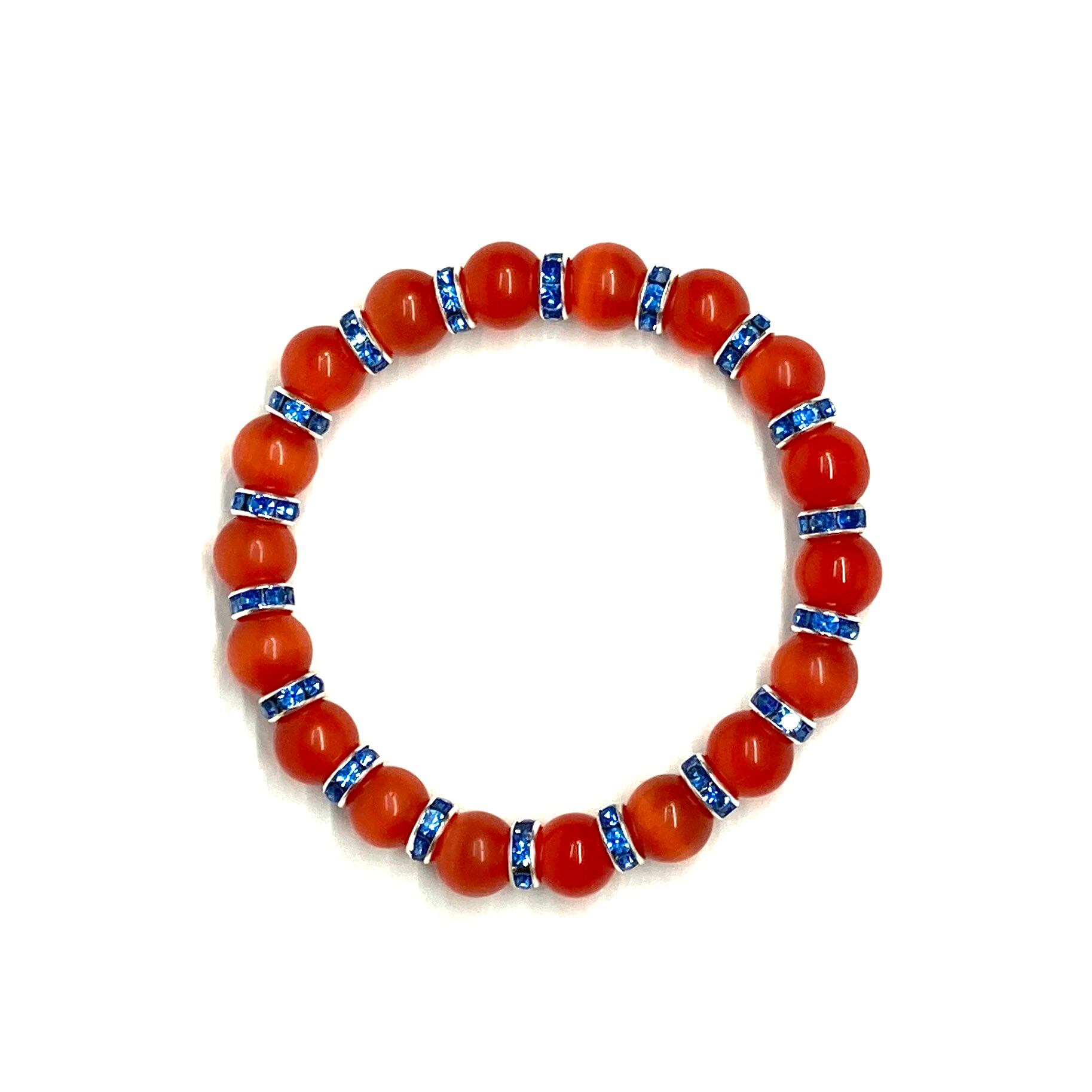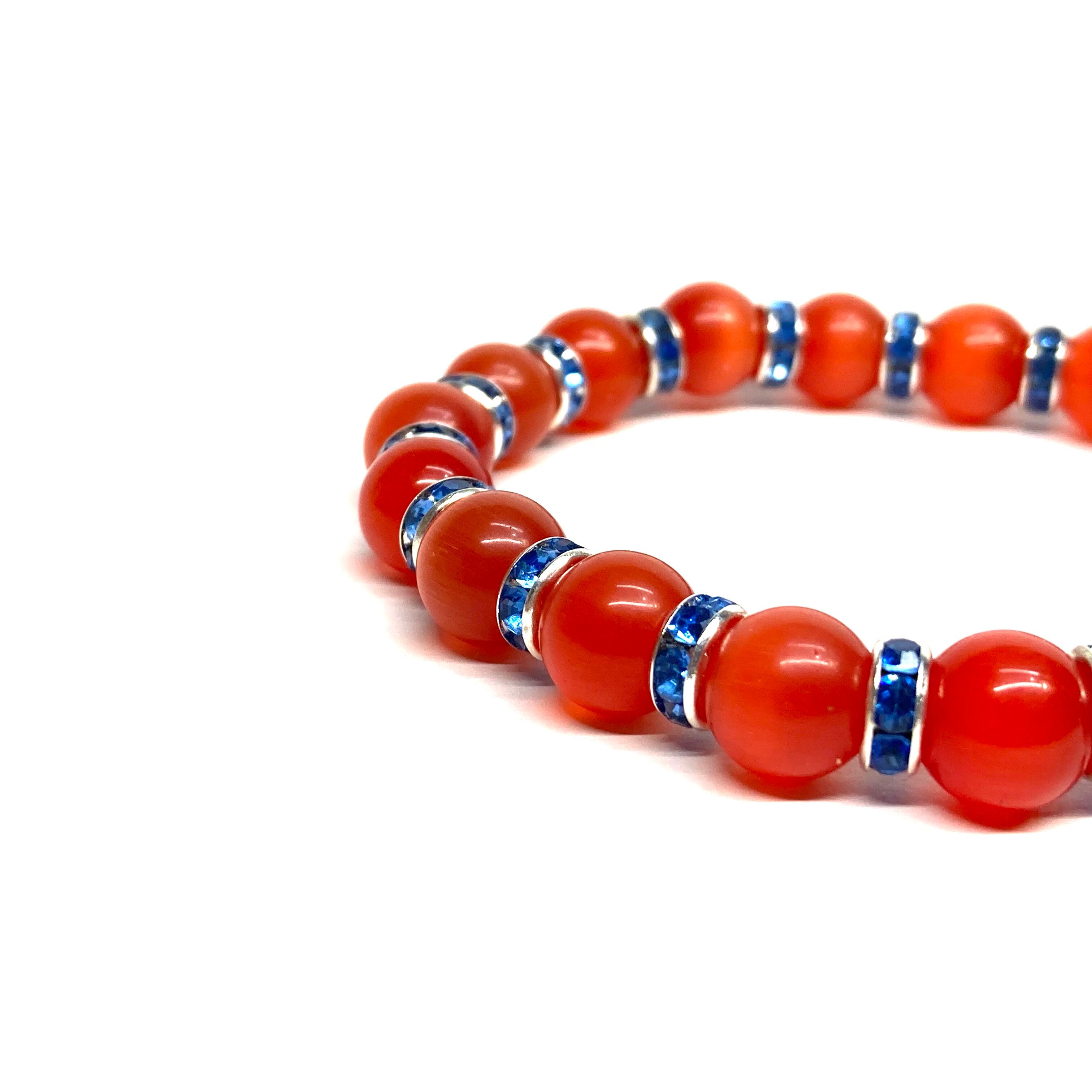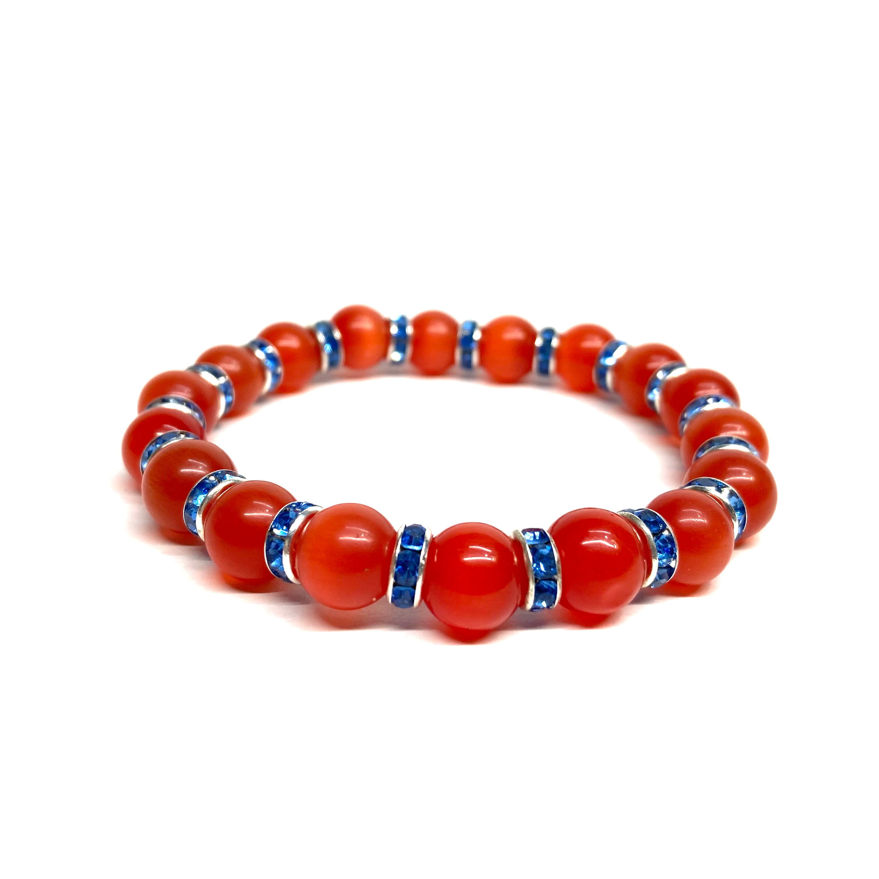 キャッツアイ(レッド) パワーストーン ブレスレット (ブルー) メンズ・レディース 男性・女性 数珠ブレス 開運