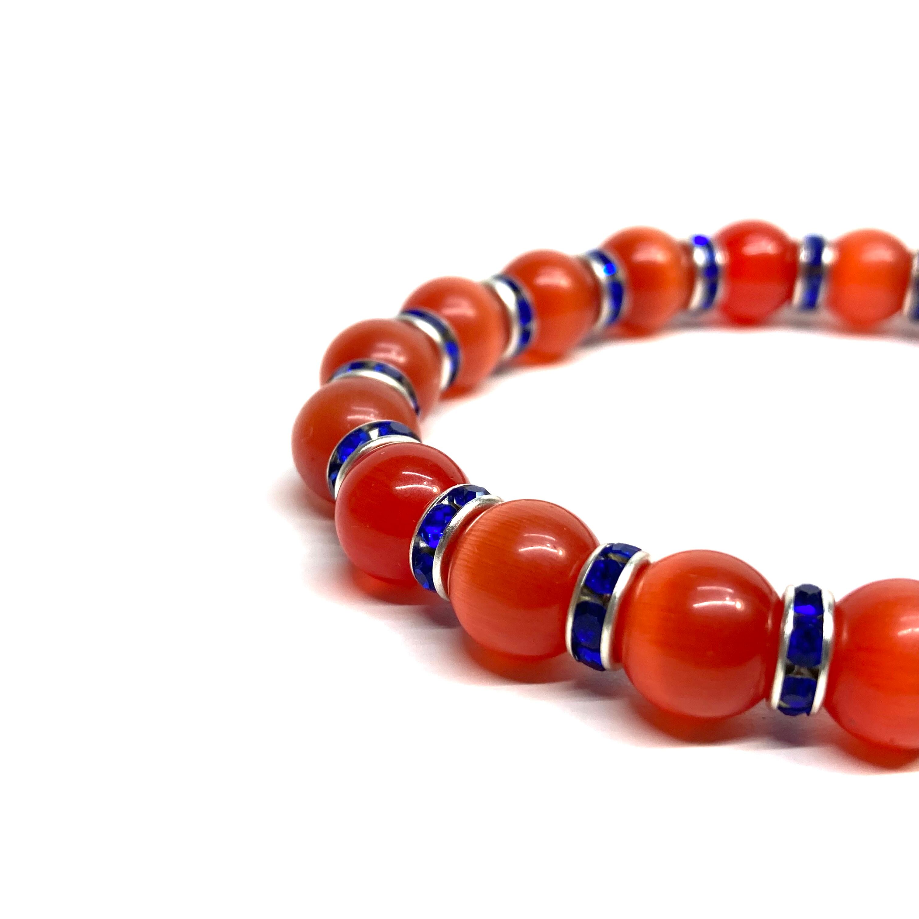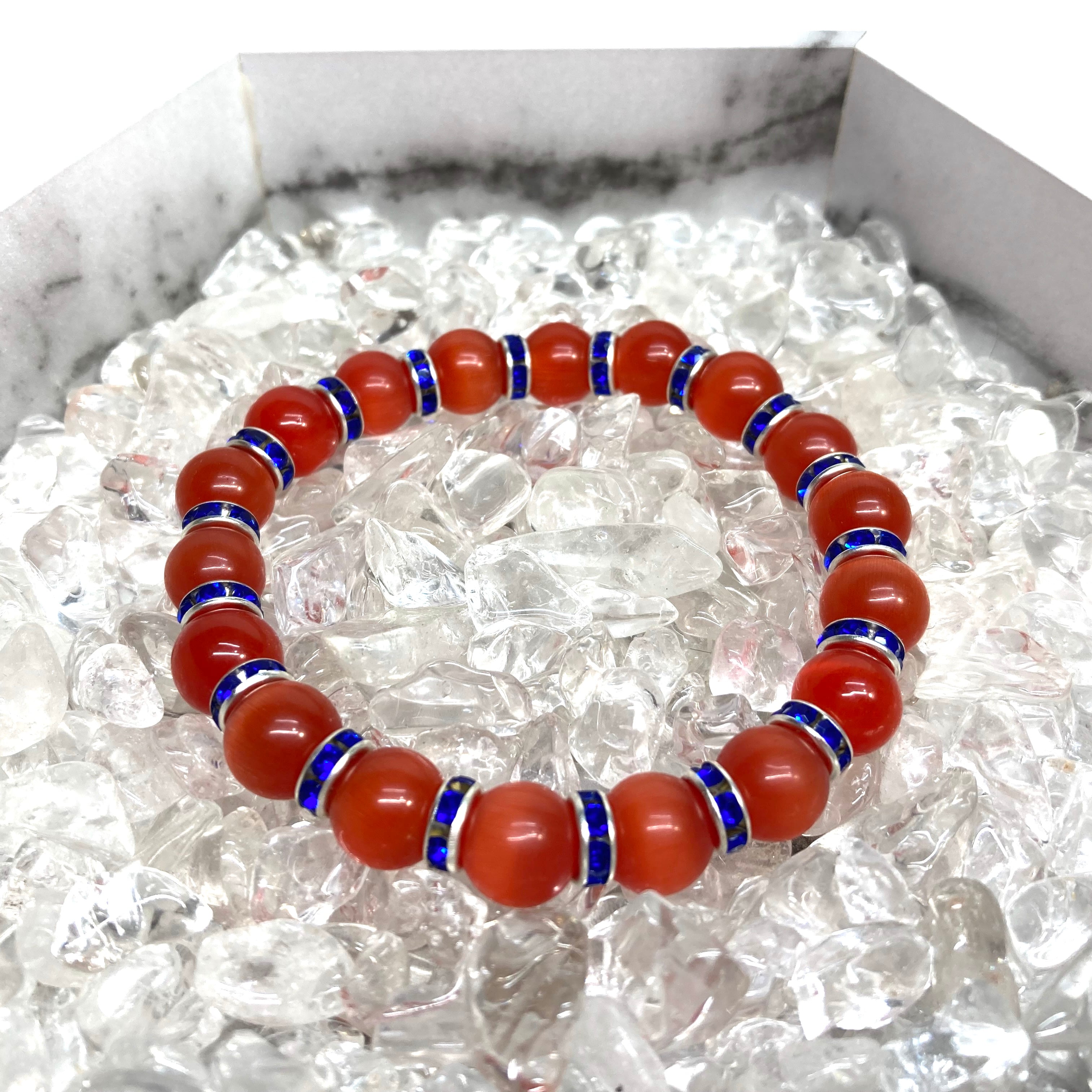 キャッツアイ(レッド) パワーストーン ブレスレット (ダークブルー) メンズ・レディース 男性・女性 数珠ブレス 開運