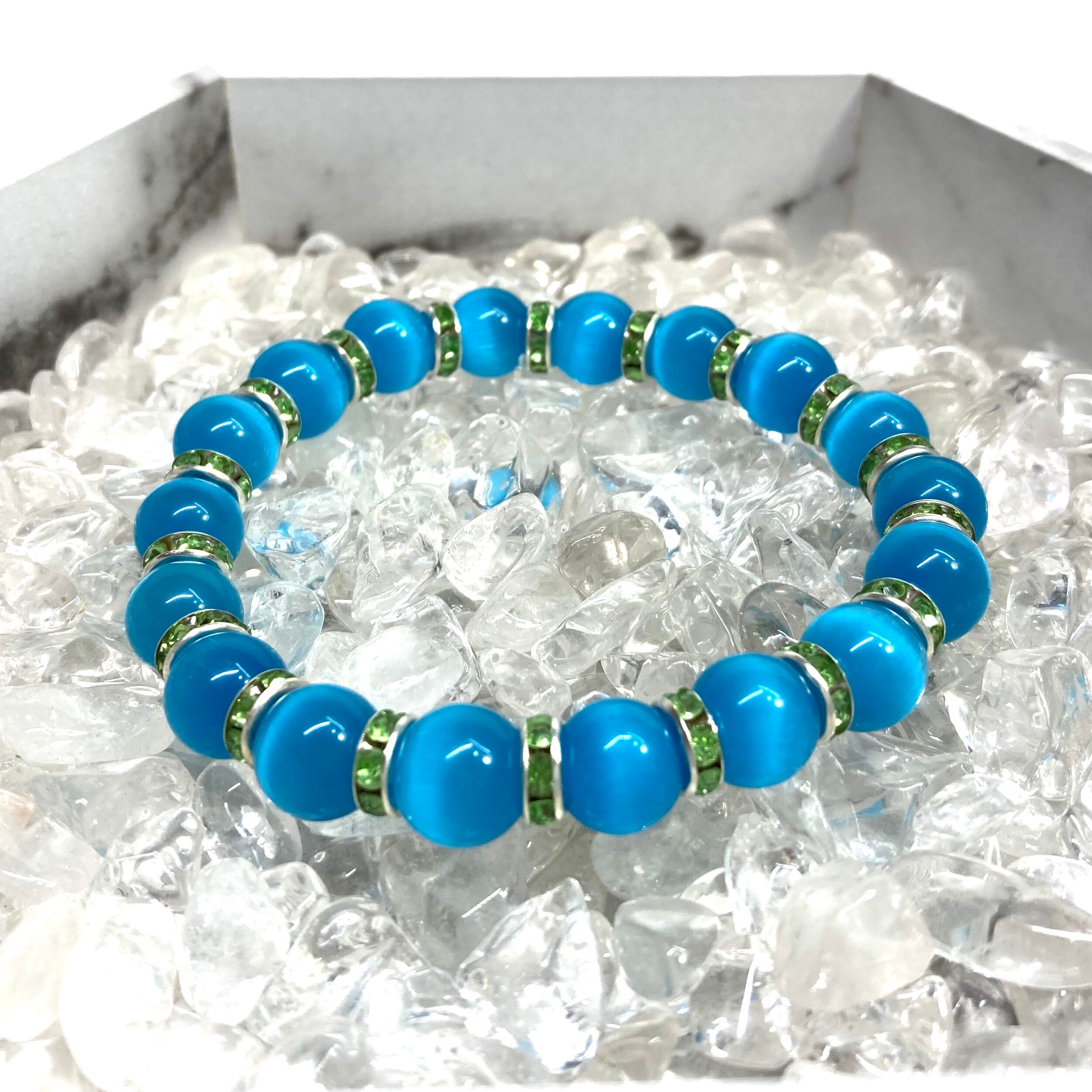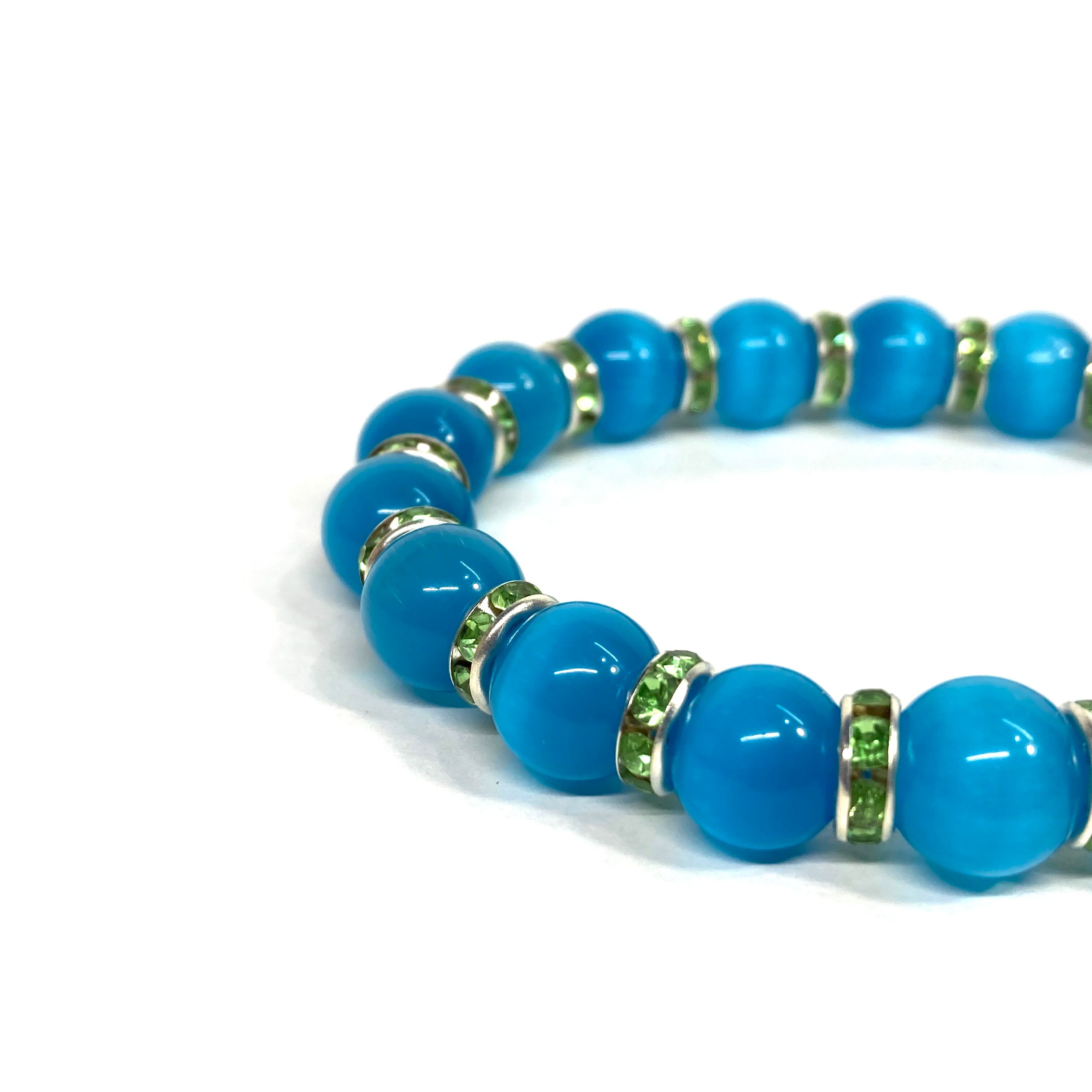 キャッツアイ(ライトブルー) パワーストーン ブレスレット (グリーン) メンズ・レディース 男性・女性 数珠ブレス 開運