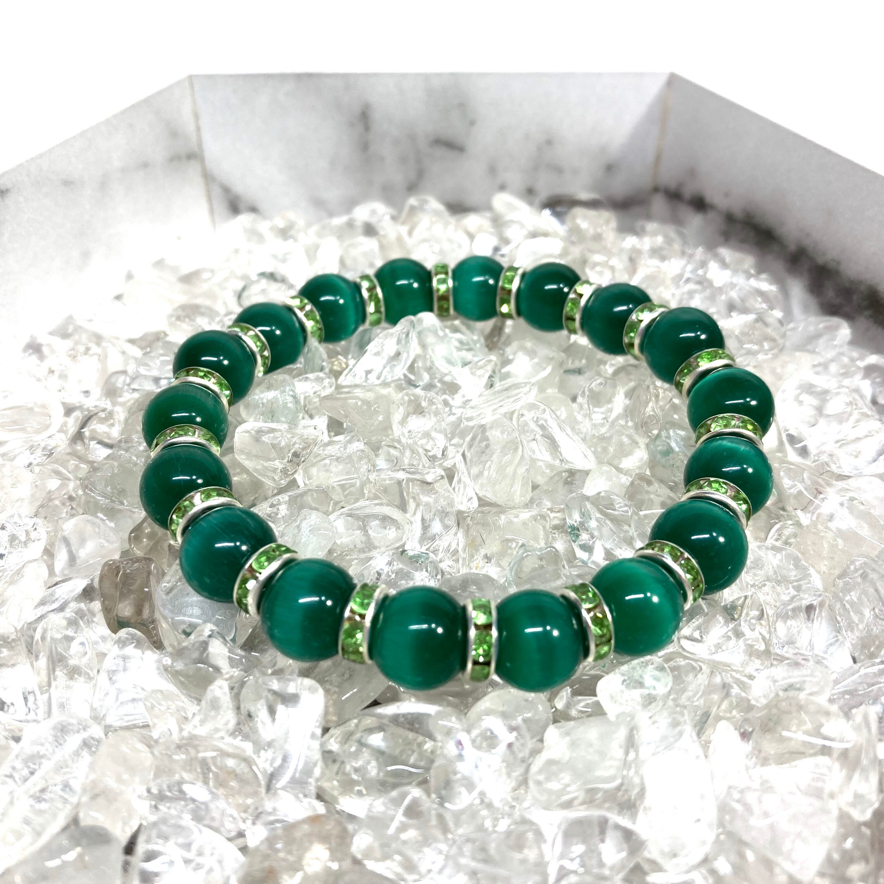 キャッツアイ(ダークグルーン) パワーストーン ブレスレット (グリーン) メンズ・レディース 男性・女性 数珠ブレス 開運