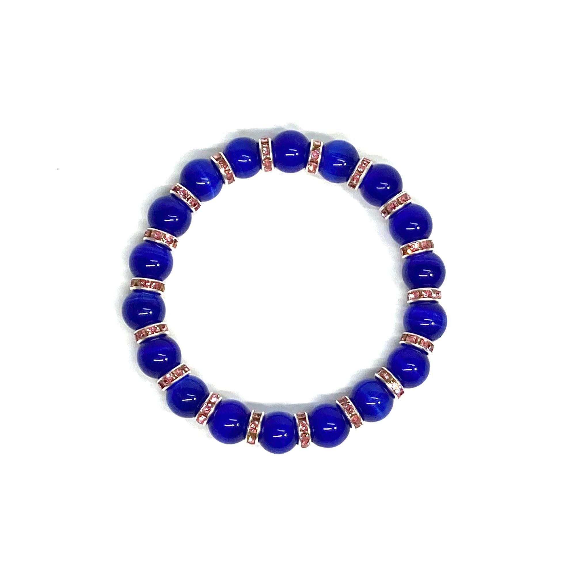 キャッツアイ(ダークブルー) パワーストーン ブレスレット (ピンク) メンズ・レディース 男性・女性 数珠ブレス 開運