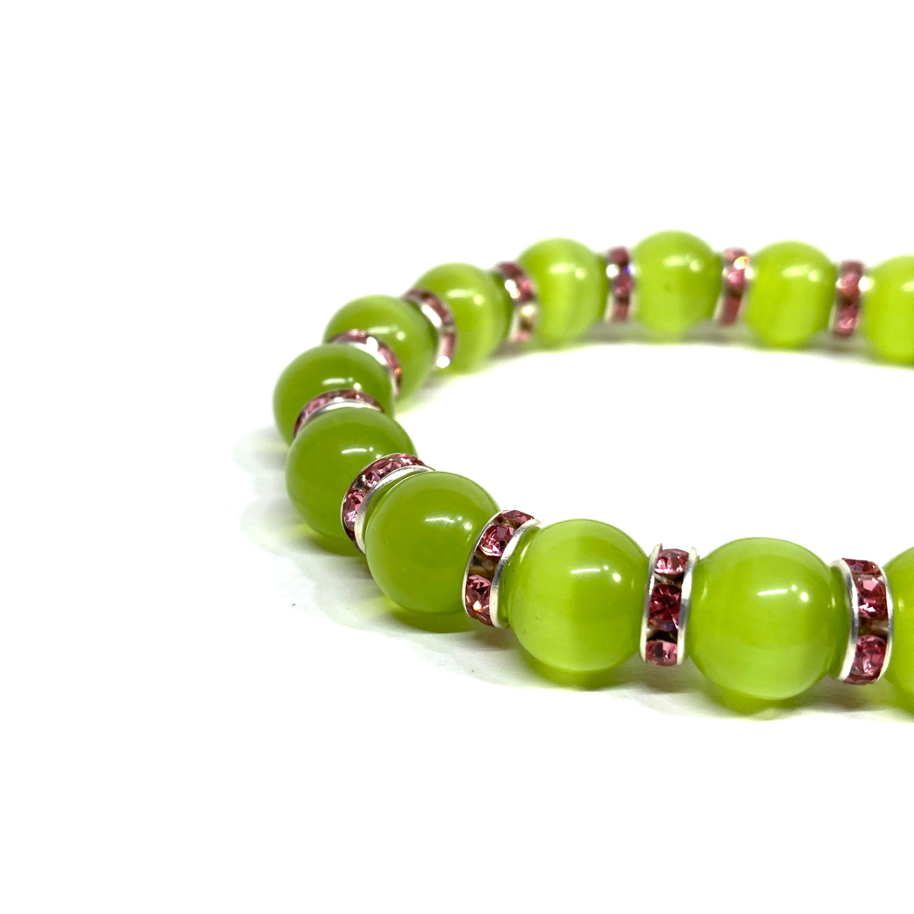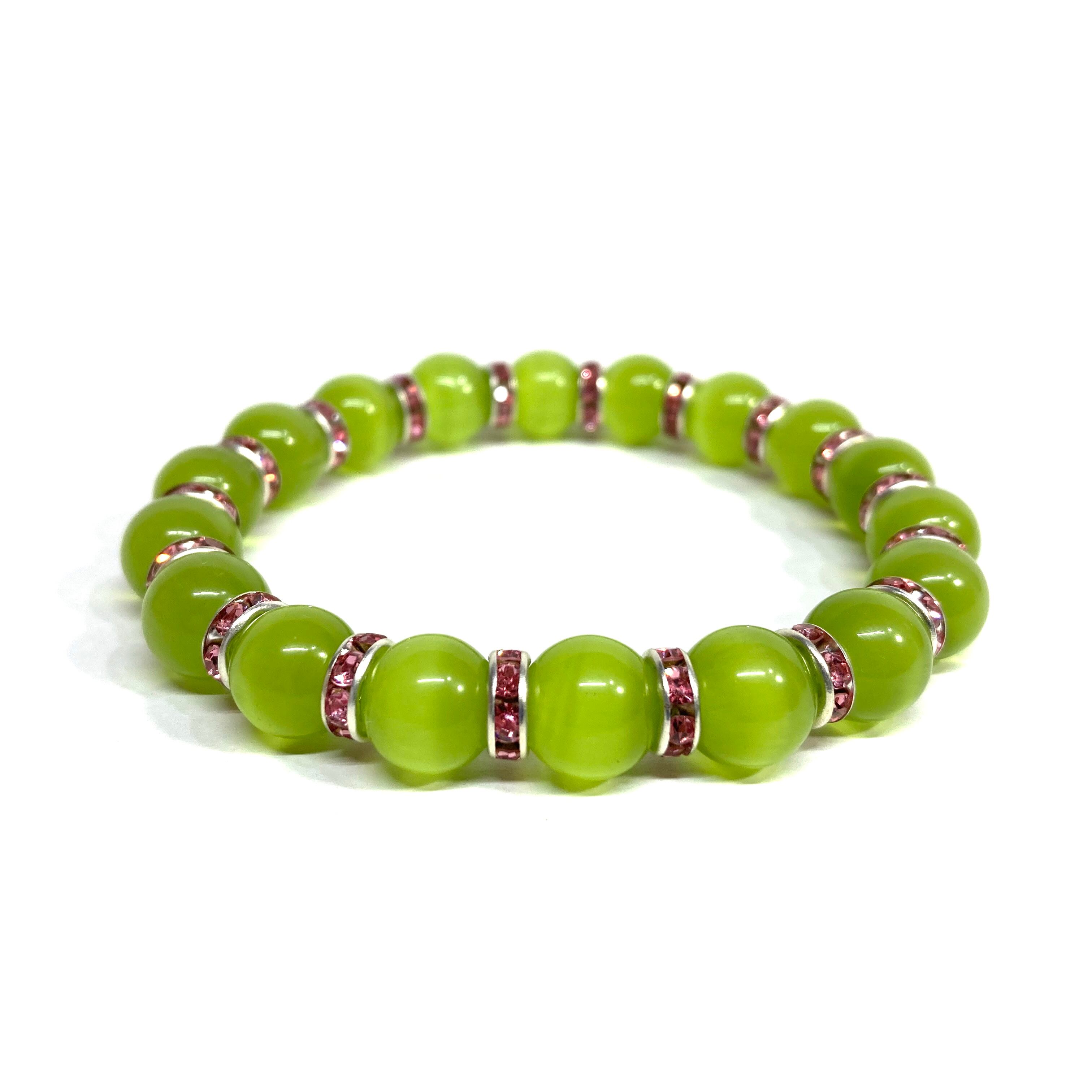 キャッツアイ(ライムグリーン) パワーストーン ブレスレット (ピンク) メンズ・レディース 男性・女性 数珠ブレス 開運