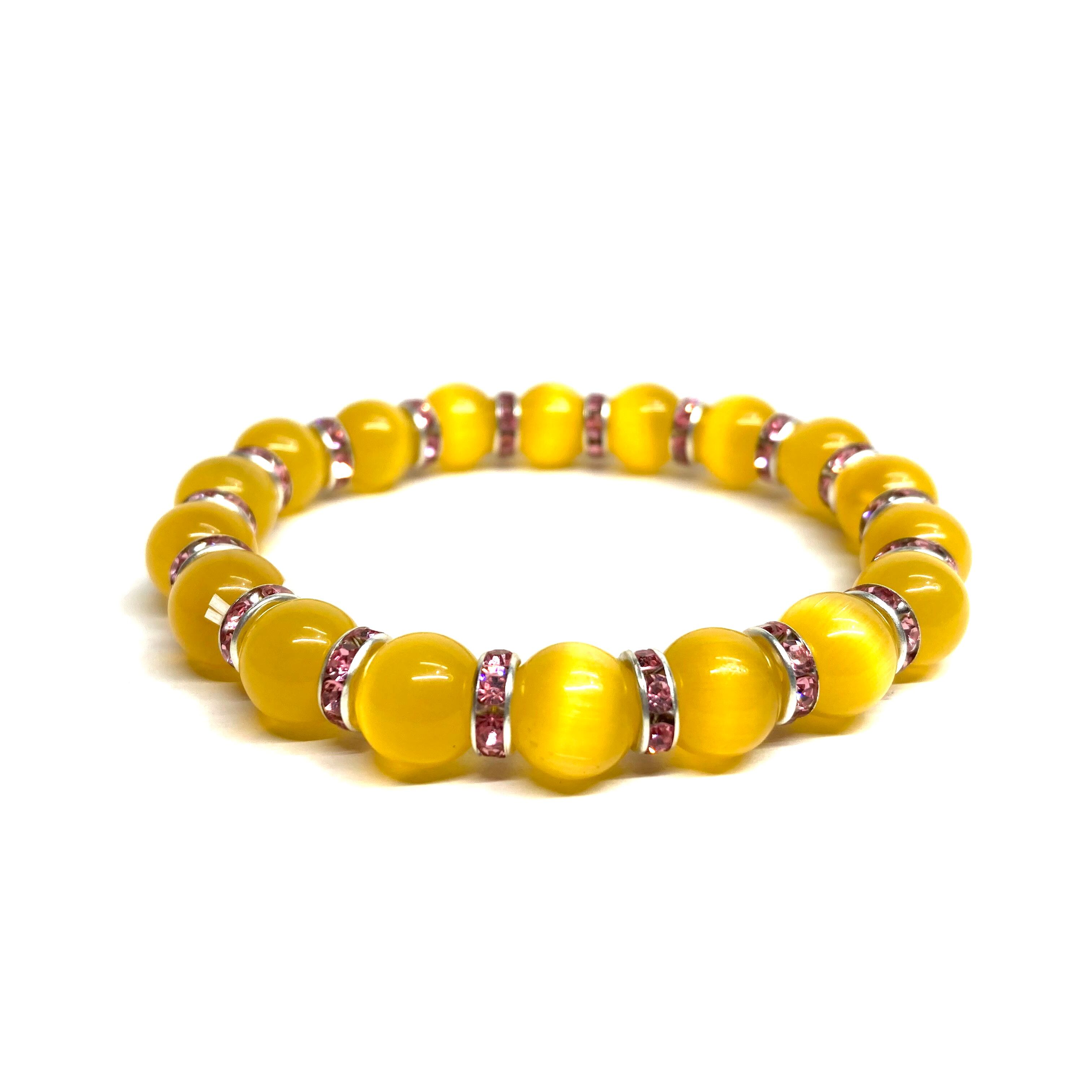 キャッツアイ(イエロー) パワーストーン ブレスレット (ピンク) メンズ・レディース 男性・女性 数珠ブレス 開運