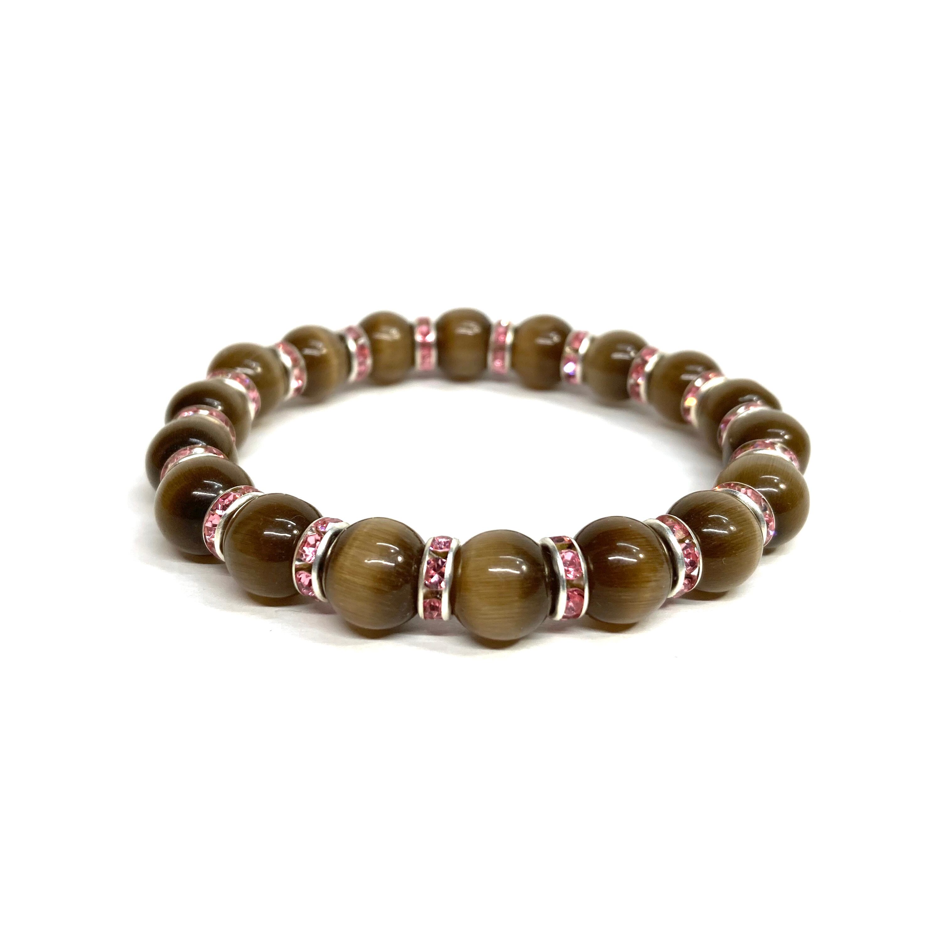 キャッツアイ(ブラウン) パワーストーン ブレスレット (ピンク) メンズ・レディース 男性・女性 数珠ブレス 開運